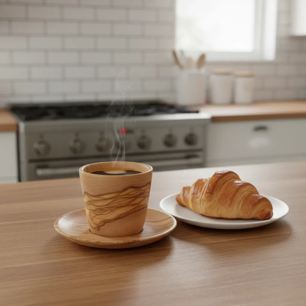 Perfect for both tableware and home decor, this olive wood cup serves multiple purposes in your household. Use it for enjoying espresso, tea, or other beverages, or display it as a decorative object that adds artisanal elegance to any room. The cup's natural aesthetic complements various interior styles, from rustic to modern. It makes an excellent conversation piece and a thoughtful gift for those who appreciate handmade quality and sustainable materials.