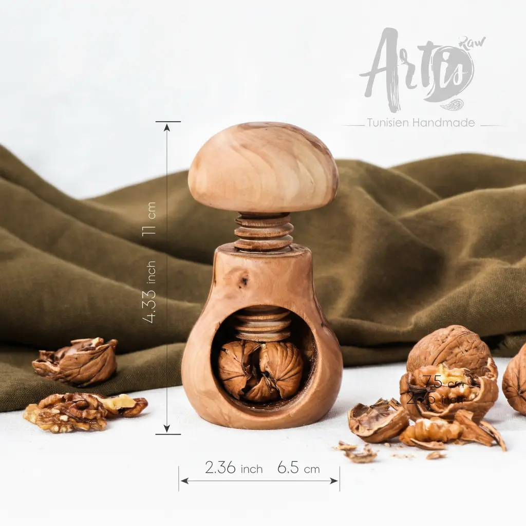 Artisraw presents a unique kitchen tool: a handmade olive wood nut crusher from Tunisia. Shaped like a charming mushroom, this durable crusher combines functional design with artisanal elegance. Crafted from solid, sustainable olive wood, each piece showcases the natural grain and beauty of the wood, making it a distinctive addition to any kitchen.