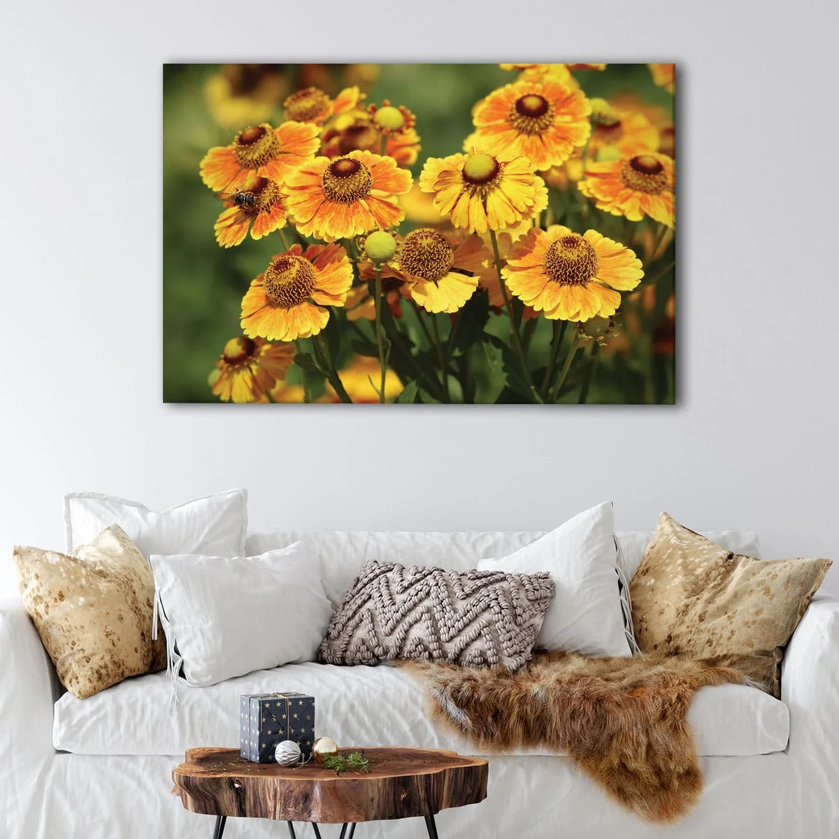 This stunning Helenium flowers canvas art is available for sale at tourathy.com and comes ready-to-hang with metal saw-tooth hangers on the back. No additional framing is required, as the canvas is carefully hand-stretched over 100% natural wood stretcher bars by our expert craftsmen.