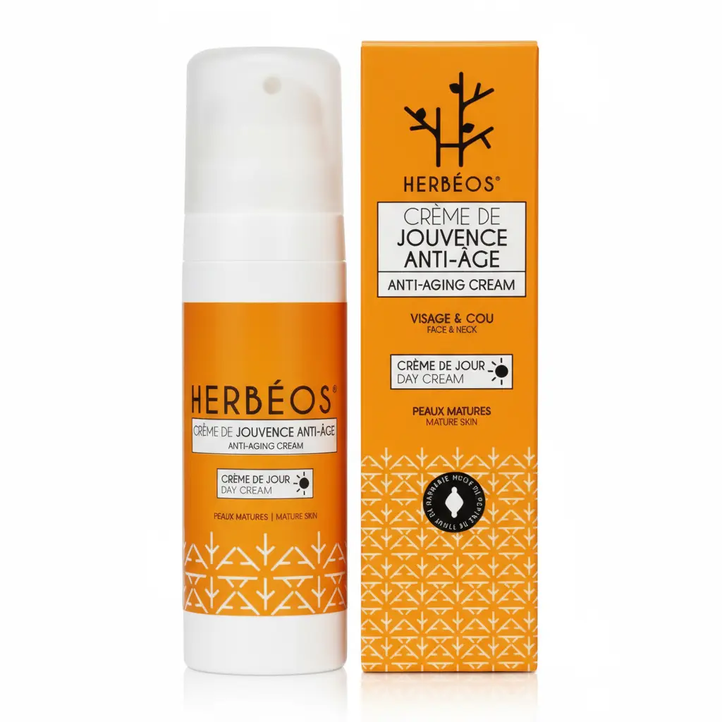 Herbeos Anti-Aging Youth Cream is a specialized day cream designed specifically for mature skin types. This premium 30ml formula provides intensive hydration and rejuvenation while targeting visible aging signs on both face and neck. The advanced facial treatment cream is perfect for daily use, helping to restore youthful radiance and improve overall skin texture for professional-grade skincare results.