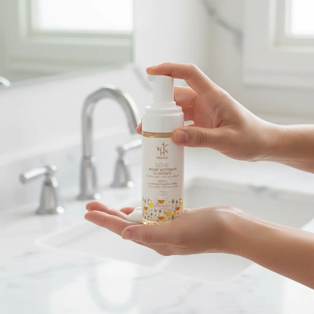 Herbeos Clarifying Cleansing Foam is a premium facial cleanser designed to deliver radiant, clarified skin. This gentle yet effective 170ml formula works as a daily cleansing mousse that deeply purifies pores while maintaining your skin's natural moisture balance. The lightweight texture transforms into a rich lather that effortlessly removes makeup, dirt, and excess oil without causing dryness or irritation.