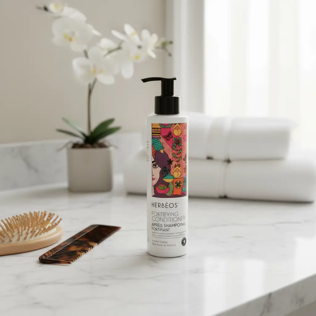 Herbeos Fortifying Conditioner is a professional hair care solution specifically designed as an anti-hair loss treatment. This 200ml product is formulated to strengthen and fortify thinning hair, working to reduce breakage and promote a healthier scalp. It is ideal for daily use, helping to combat hair fall and improve overall hair resilience for a fuller, more vibrant appearance.