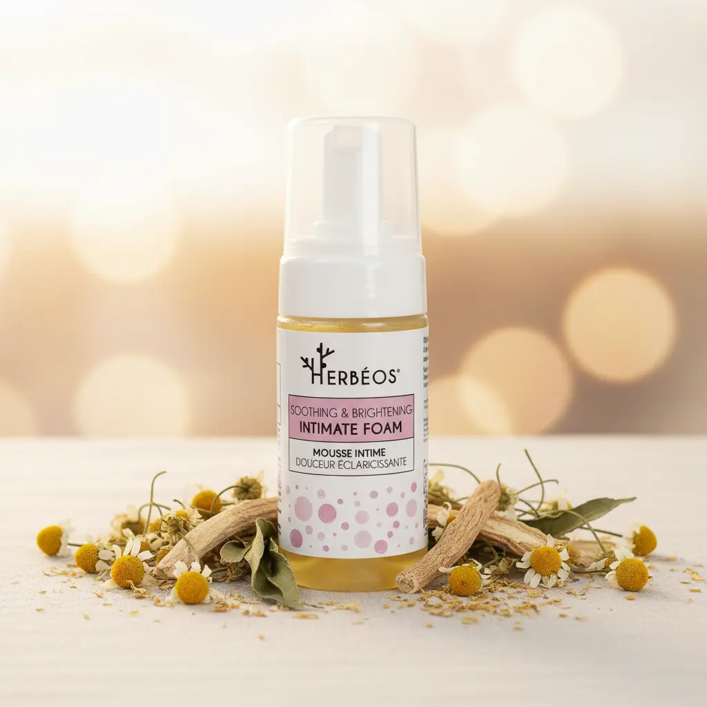 Herbeos Intimate Lightening Mousse is a premium 120ml skincare solution specifically designed for delicate intimate areas. This specially formulated foam provides gentle brightening and soothing care while promoting an even skin tone. The non-irritating formula ensures comfortable application, making it perfect for daily use in your personal care routine.