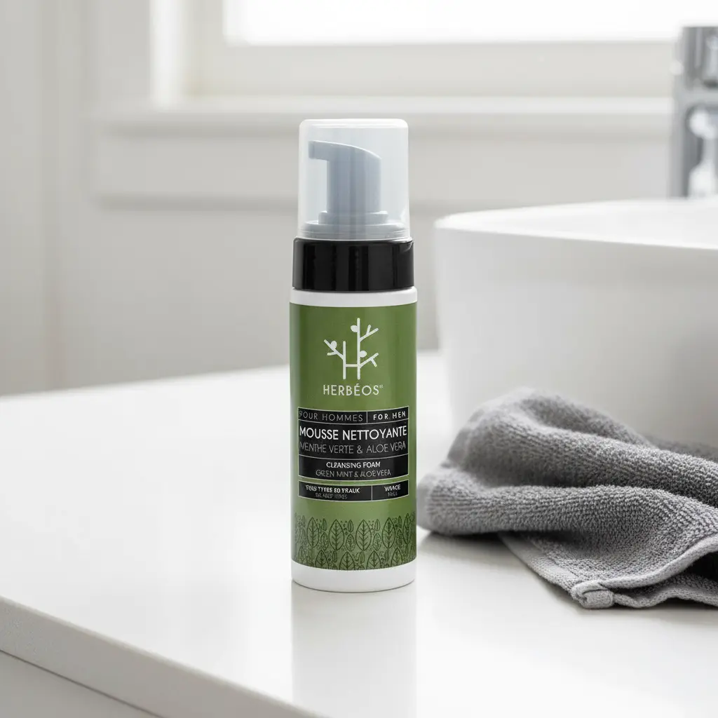 Herbeos Men's Green Mint & Aloe Vera Cleansing Foam is specifically designed for men's skincare needs. This premium cleansing solution combines natural ingredients to provide an effective and refreshing cleaning experience. The formula is carefully crafted to address the unique requirements of men's skin while being gentle enough for all skin types. Perfect for daily use, this cleansing foam helps maintain healthy, clean skin as part of your regular grooming routine.