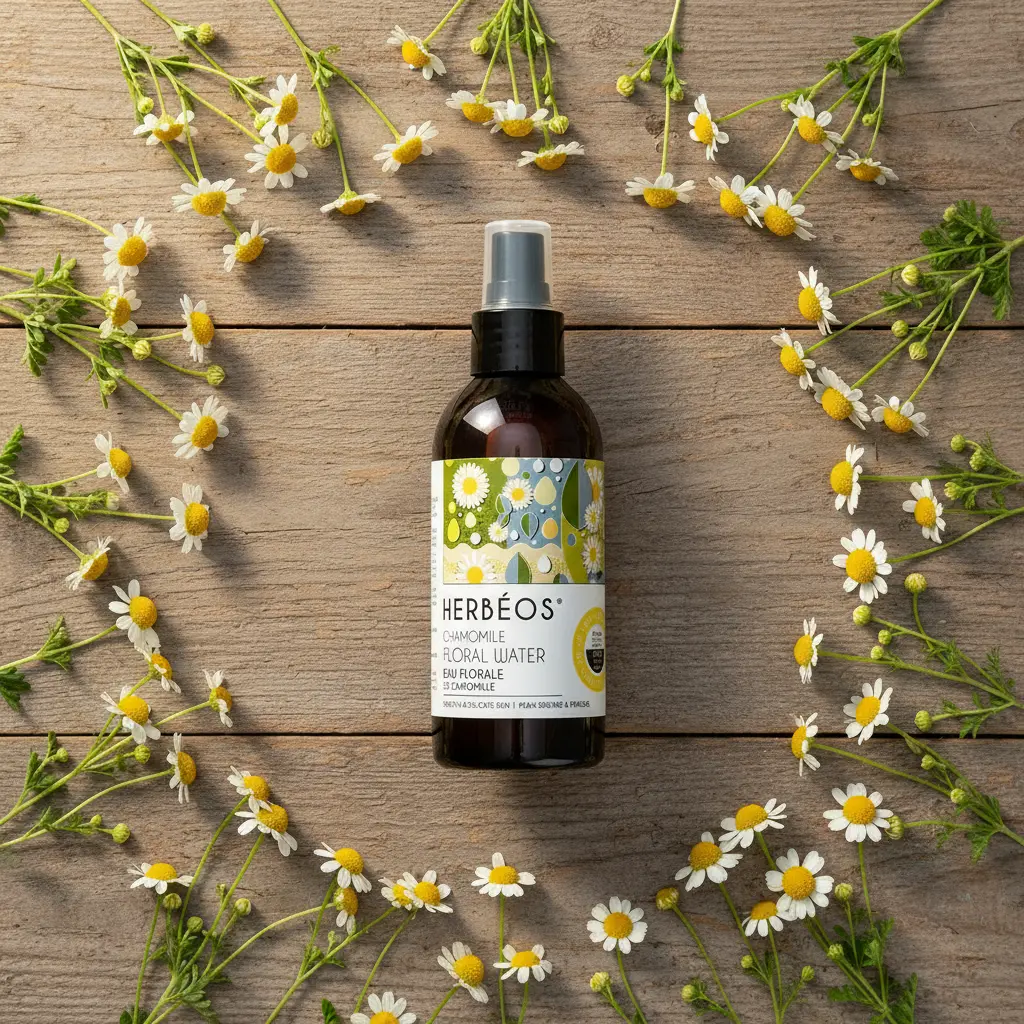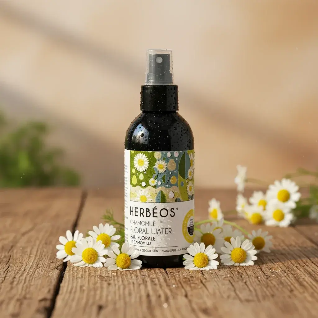 Herbeos Roman Chamomile Floral Water is a gentle 150ml skincare mist specifically formulated for sensitive and delicate skin types. This natural floral water serves as a multi-purpose skincare essential that can be used as a facial toner, refreshing spray, or makeup setting mist. The product comes in a convenient spray bottle for easy application throughout the day, making it perfect for both at-home skincare routines and on-the-go refreshment.
