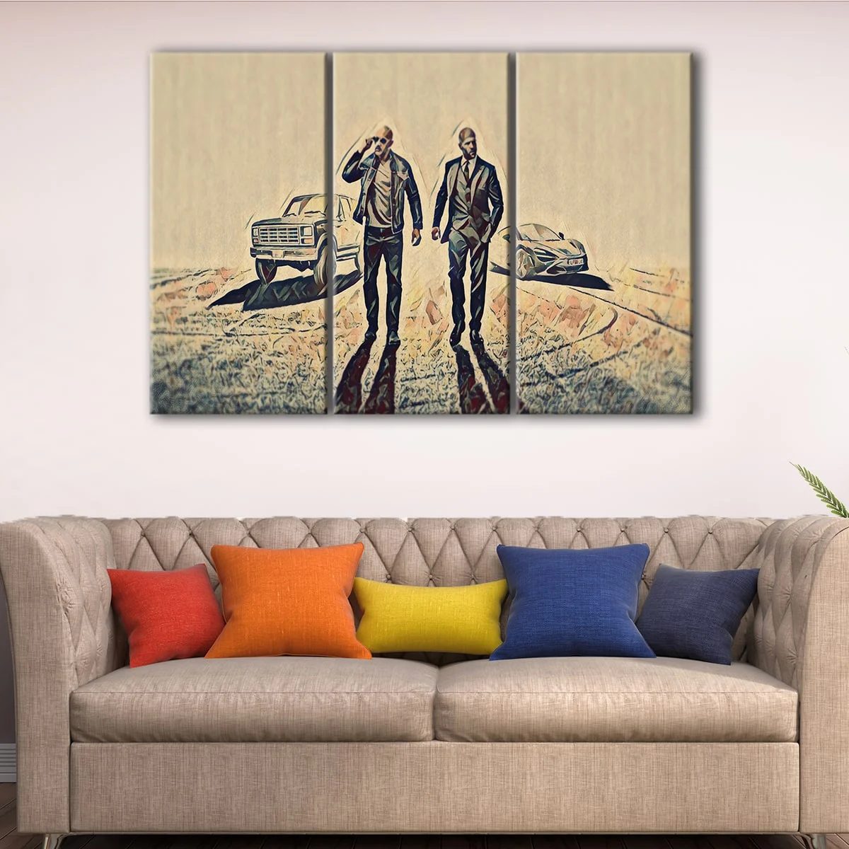 This Hobbs and Shaw movie wall art is available in several styles including 1 panel canvas wrap and 3 panels canvas wrap. It comes in a variety of sizes, from small to large, making it perfect for any room in your home, such as the living room, hallway, kids' room, or dining room.