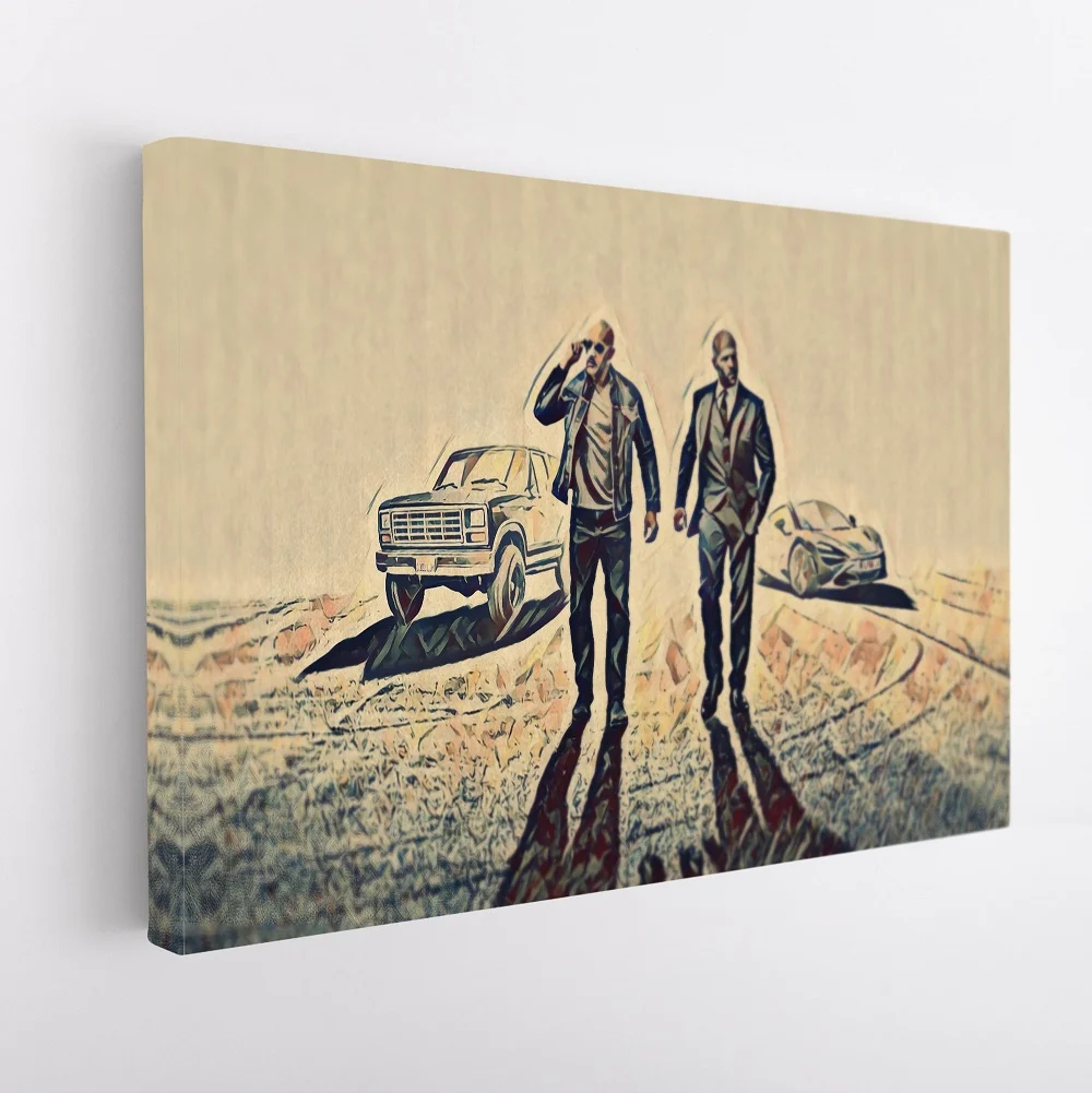 Give the gift of action-packed excitement with this stunning Hobbs and Shaw canvas wall art. It's an ideal present for fans of Dwayne Johnson and Jason Statham, as well as anyone who loves the Fast & Furious franchise. Make it a special gift for any occasion, such as a birthday or anniversary. You can also use it to decorate your own space and show off your love for the movie. available for sale at tourathy.com