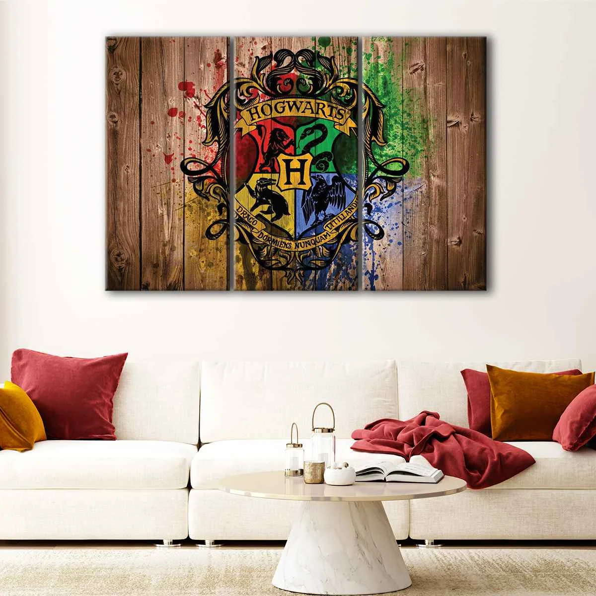 This stunning Hogwarts Logo canvas wall art is a must-have for any fan of fantasy movies. Its unique design and beautiful colors make it a perfect addition to any room, and its durability ensures it will last for years to come. Give the gift of magic to someone special in your life, or treat yourself to a beautiful piece of artwork.