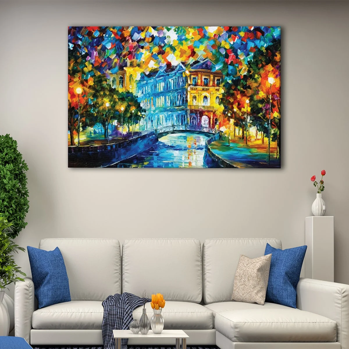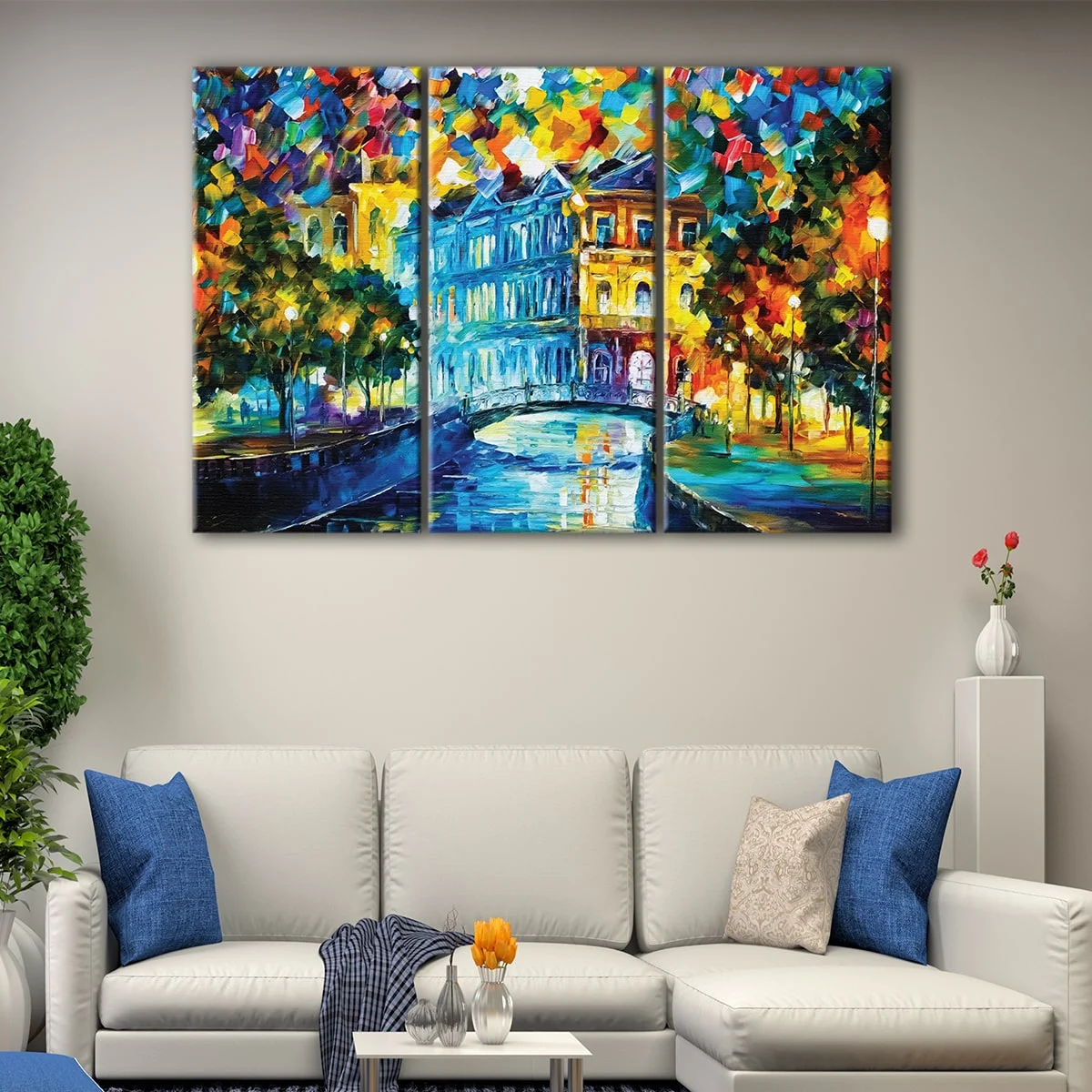 This stunning Leonid Afremov painting wall decor is available in a range of configurations to suit your preferences. Choose from 1 panel, 3 panels, or a single piece, and select from various sizes to find the perfect fit for your living room, hallway, or bedroom.