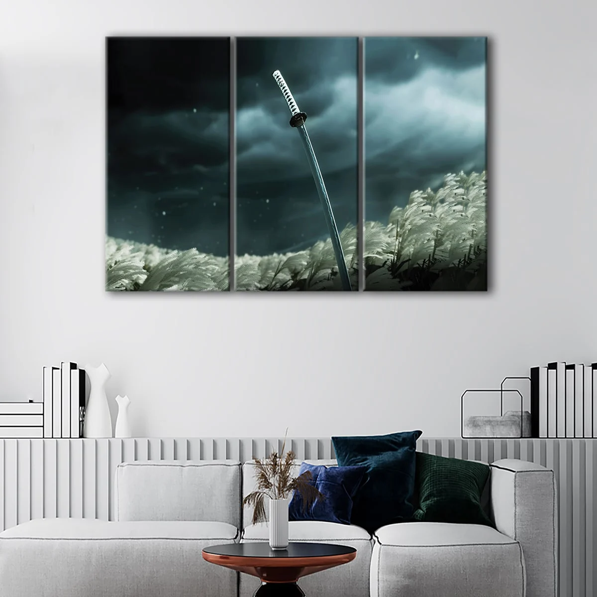 The stunning Katana Sword in Wind canvas art is a masterpiece that adds a touch of sophistication to any room. Expertly crafted to ensure a long-lasting high-definition print, this artwork comes ready-to-hang with metal saw-tooth hangers on the back, requiring no additional framing. The canvas is carefully hand-stretched over 100% natural wood stretcher bars by skilled craftsmen.