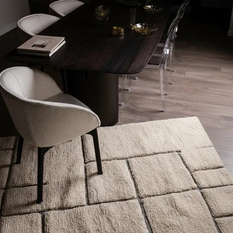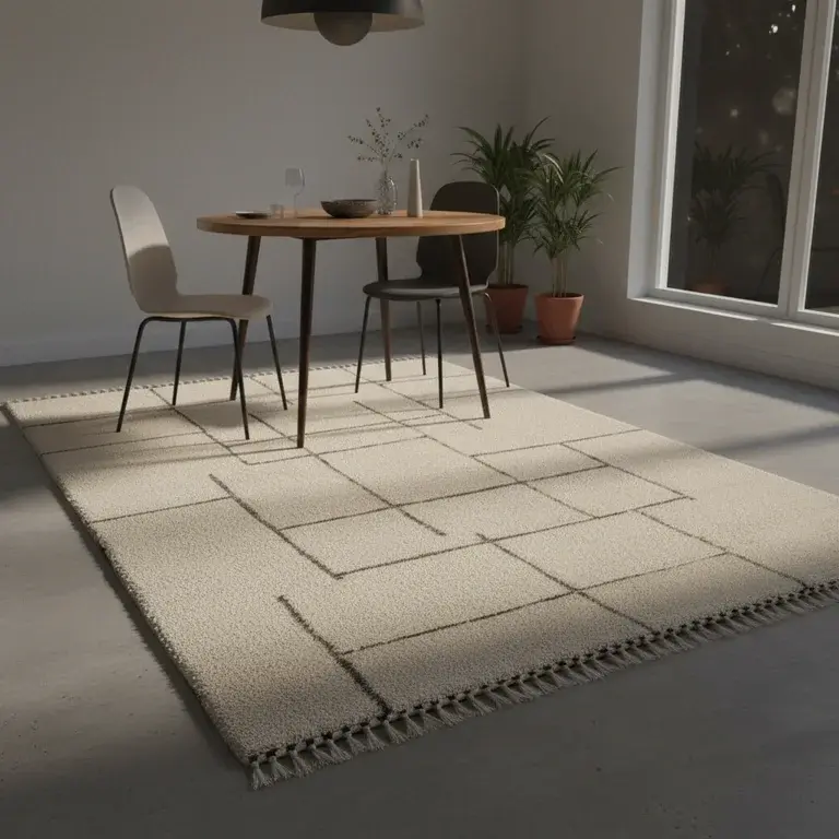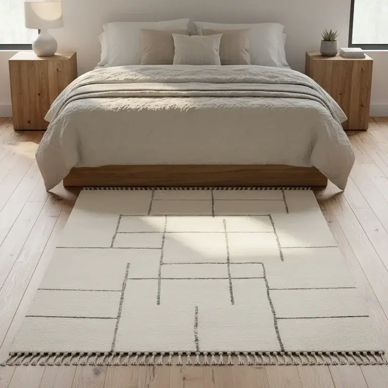 This versatile rug serves as both functional floor covering and artistic centerpiece in any room. Perfect for living areas where it adds warmth underfoot, or in bedrooms where its soft texture provides comfort. The durable construction withstands daily use while maintaining its beauty. Use it to define spaces in open-plan areas or as a wall hanging to showcase the intricate patterns. The rug's neutral tones complement various decor styles from rustic to contemporary.