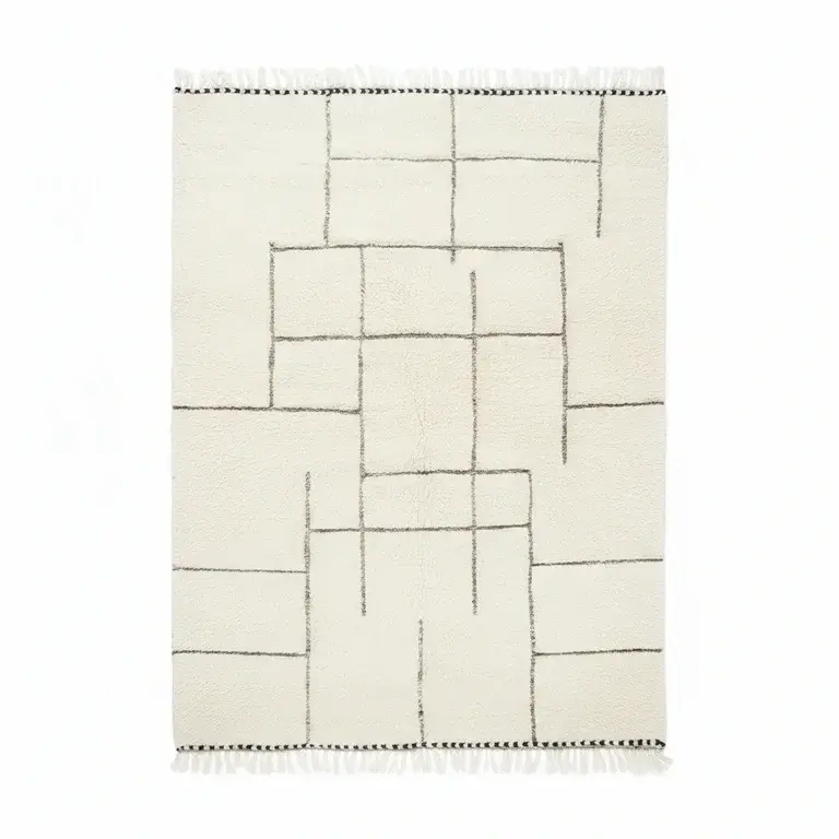 The Kaysaa Berber Rug represents generations of traditional weaving techniques passed down through Berber artisans. Each rug tells a story through its distinctive geometric patterns and symbols that reflect cultural heritage. Made from natural materials using time-honored methods, this rug showcases the authentic craftsmanship that has made Berber rugs cherished worldwide. The neutral color palette and textured surface create visual interest while maintaining timeless appeal.
