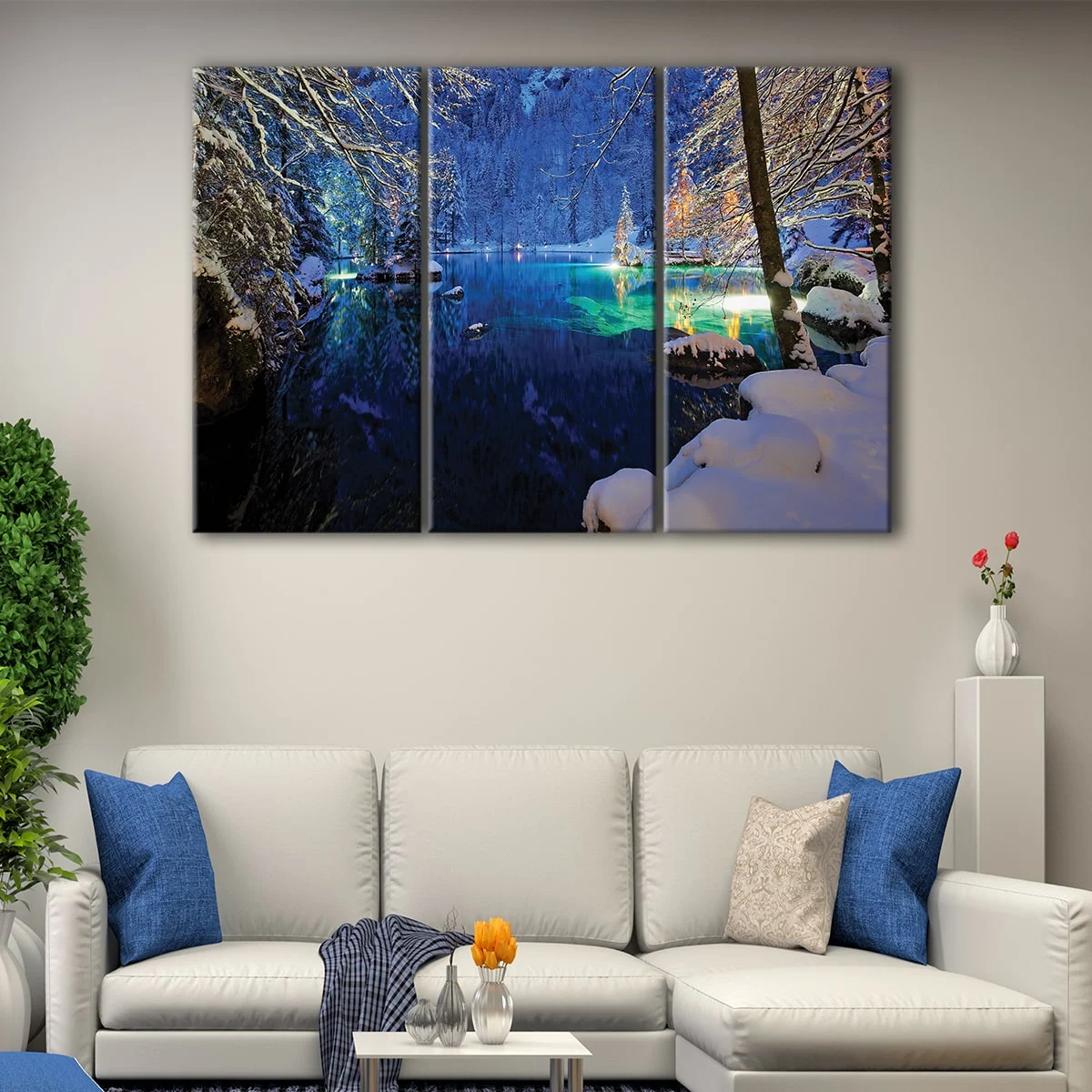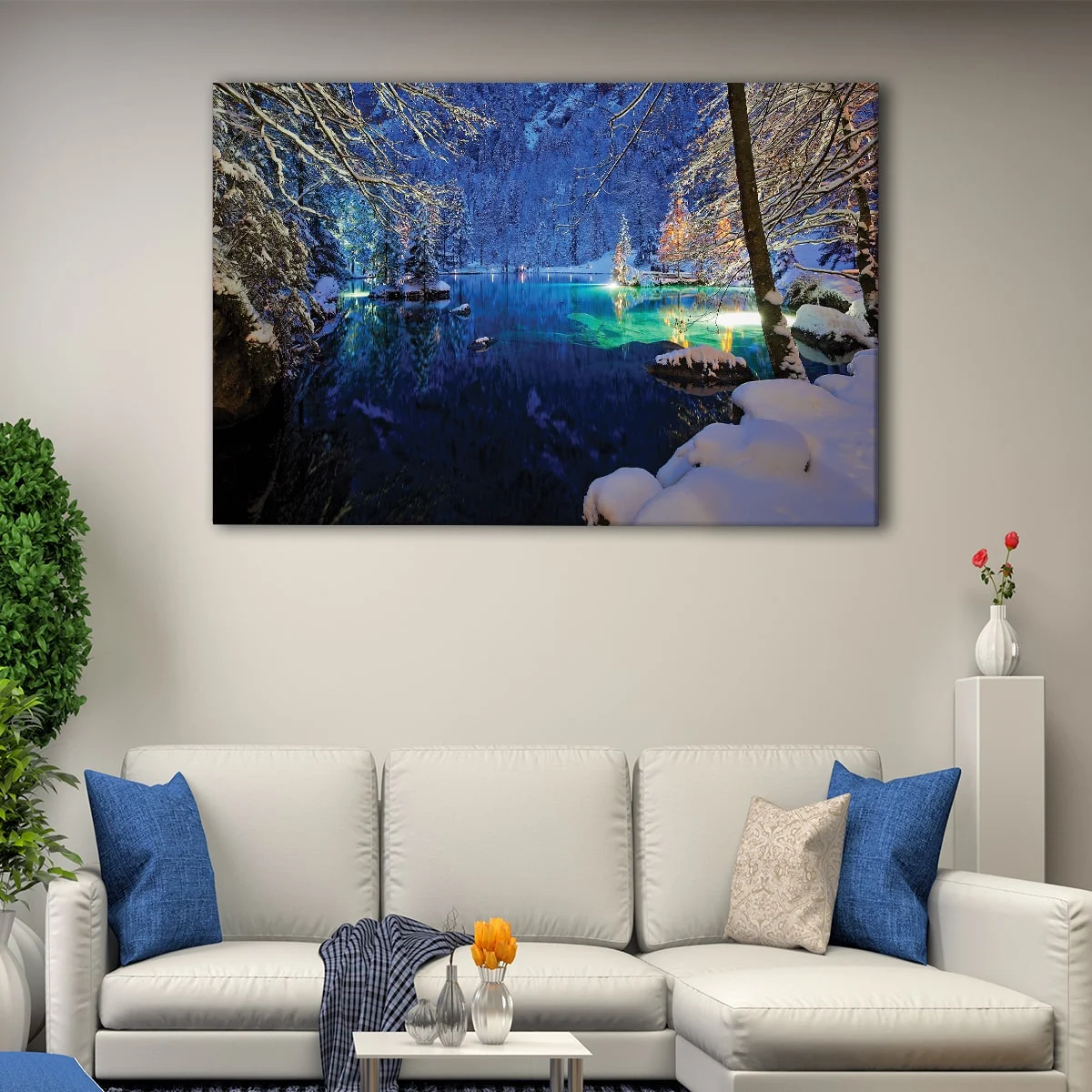 Our Lake Blausee canvas art is a stunning addition to any room, with metal saw-tooth hangers and no additional framing required. Each piece is carefully hand-stretched over 100% natural wood stretcher bars by our expert craftsmen.