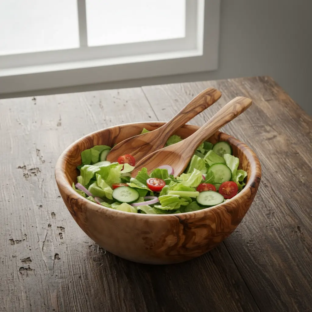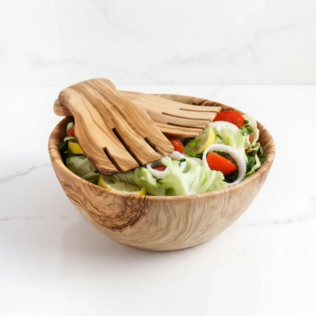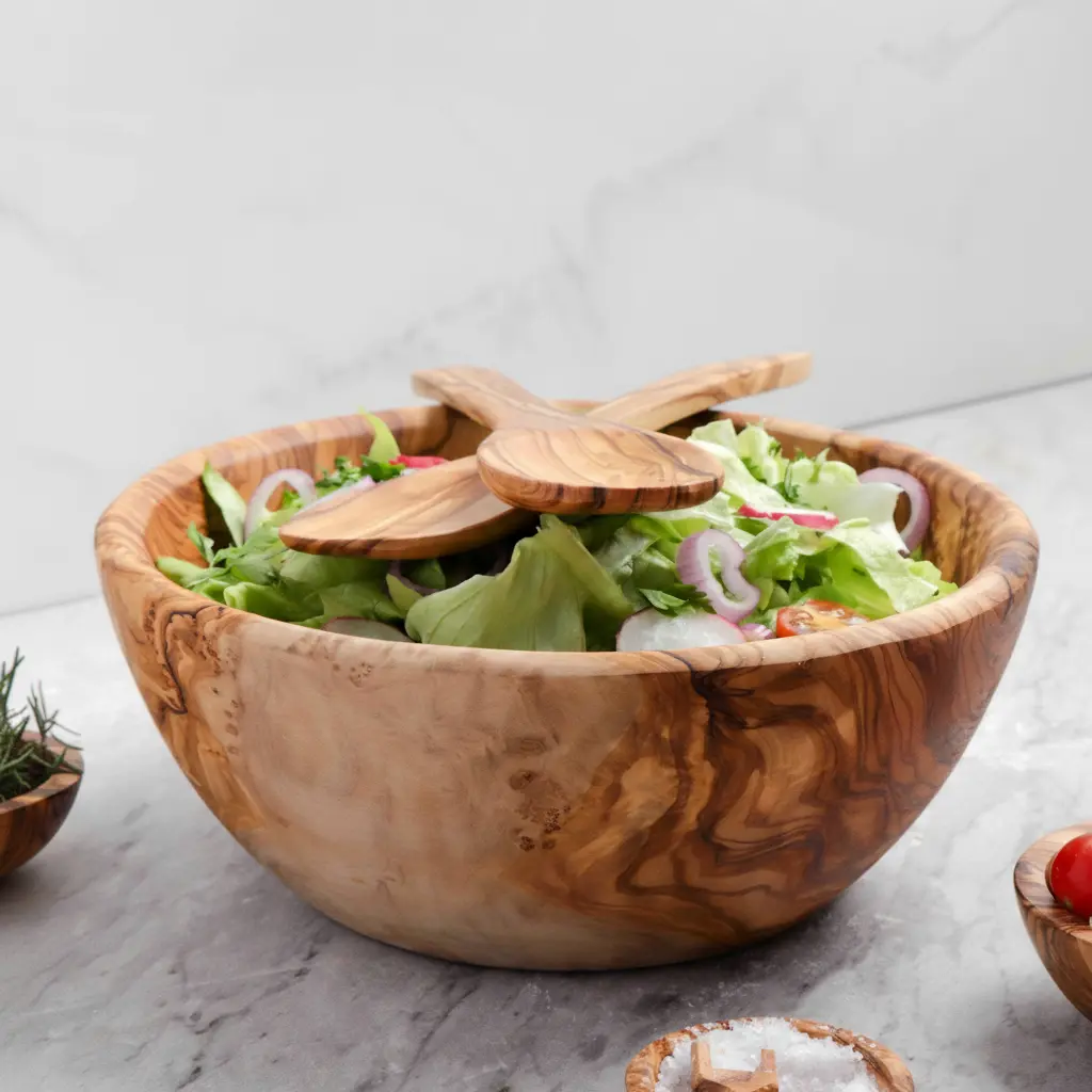 This versatile bowl is ideal for serving a variety of foods. Use it for fresh salads, artisan bread, colorful fruit, or even as a decorative centerpiece. Its generous size and sturdy construction make it a practical and stylish addition to any kitchen. The natural olive wood material ensures it is both functional and an attractive piece of decor.