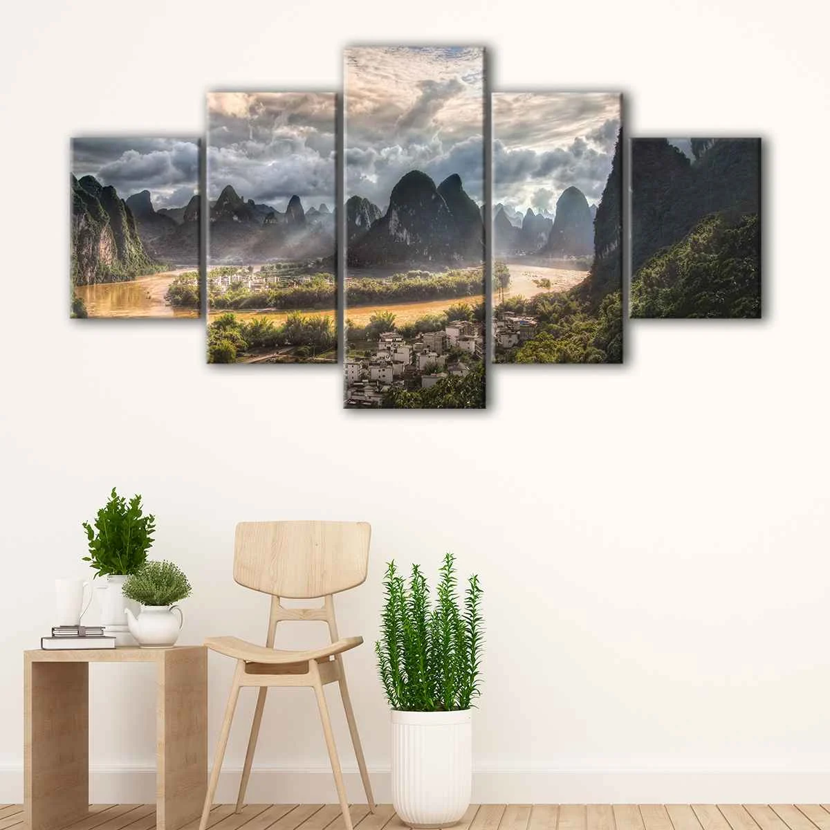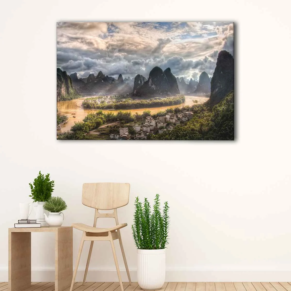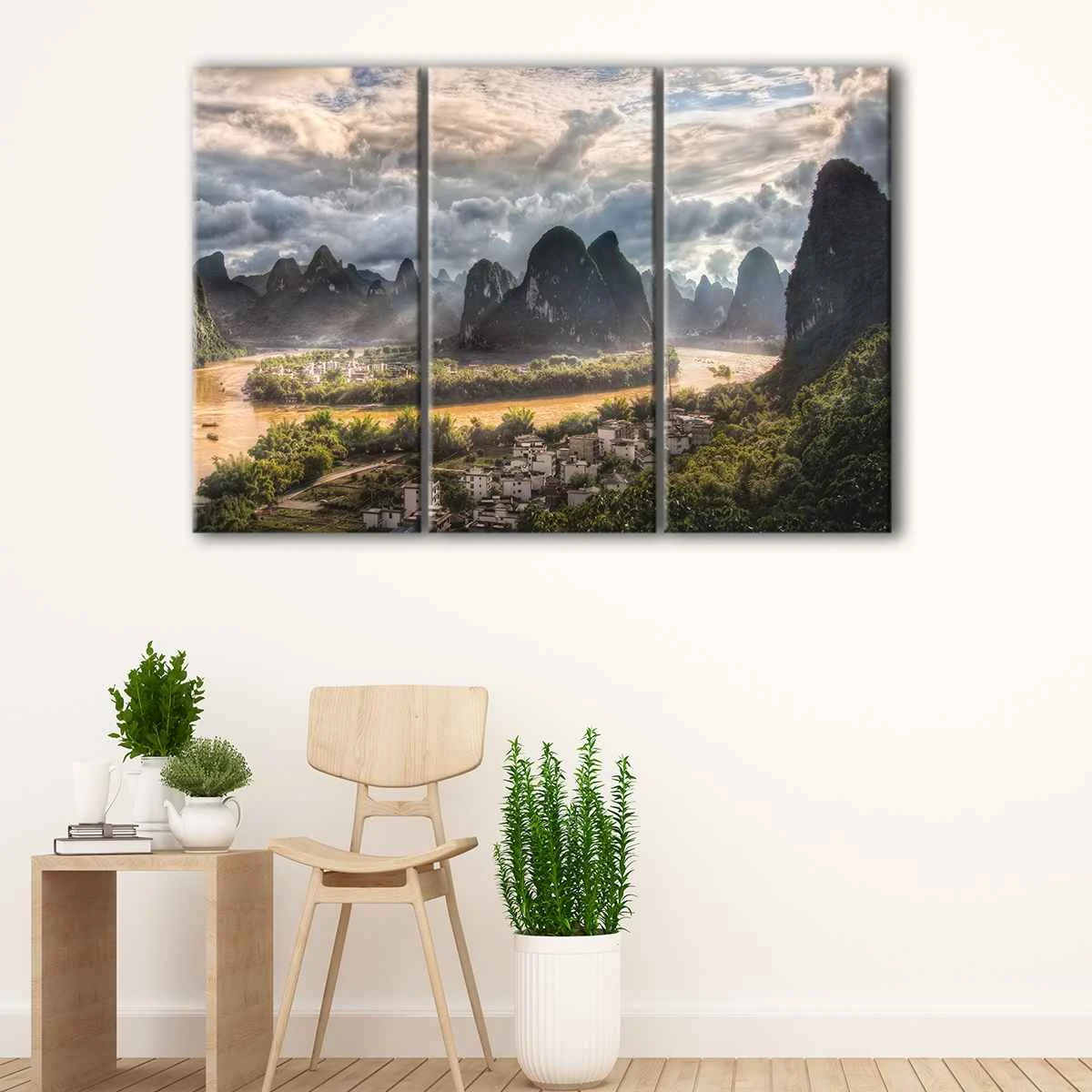 Our Li River Village canvas art comes in various sizes, from small to oversized, and is available in 1 panel, 3 panels, or a single incredible piece. It's the perfect addition to your living room, hallway, kids room, or dining room.