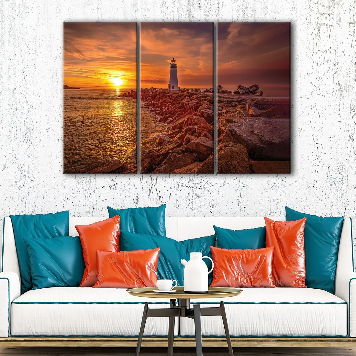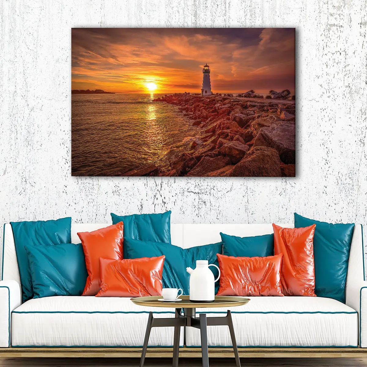This stunning sunset view wall art is carefully crafted with high-quality materials and designed to last for generations. The Lighthouse Sunset canvas comes ready-to-hang with metal saw-tooth hangers, eliminating the need for additional framing.
