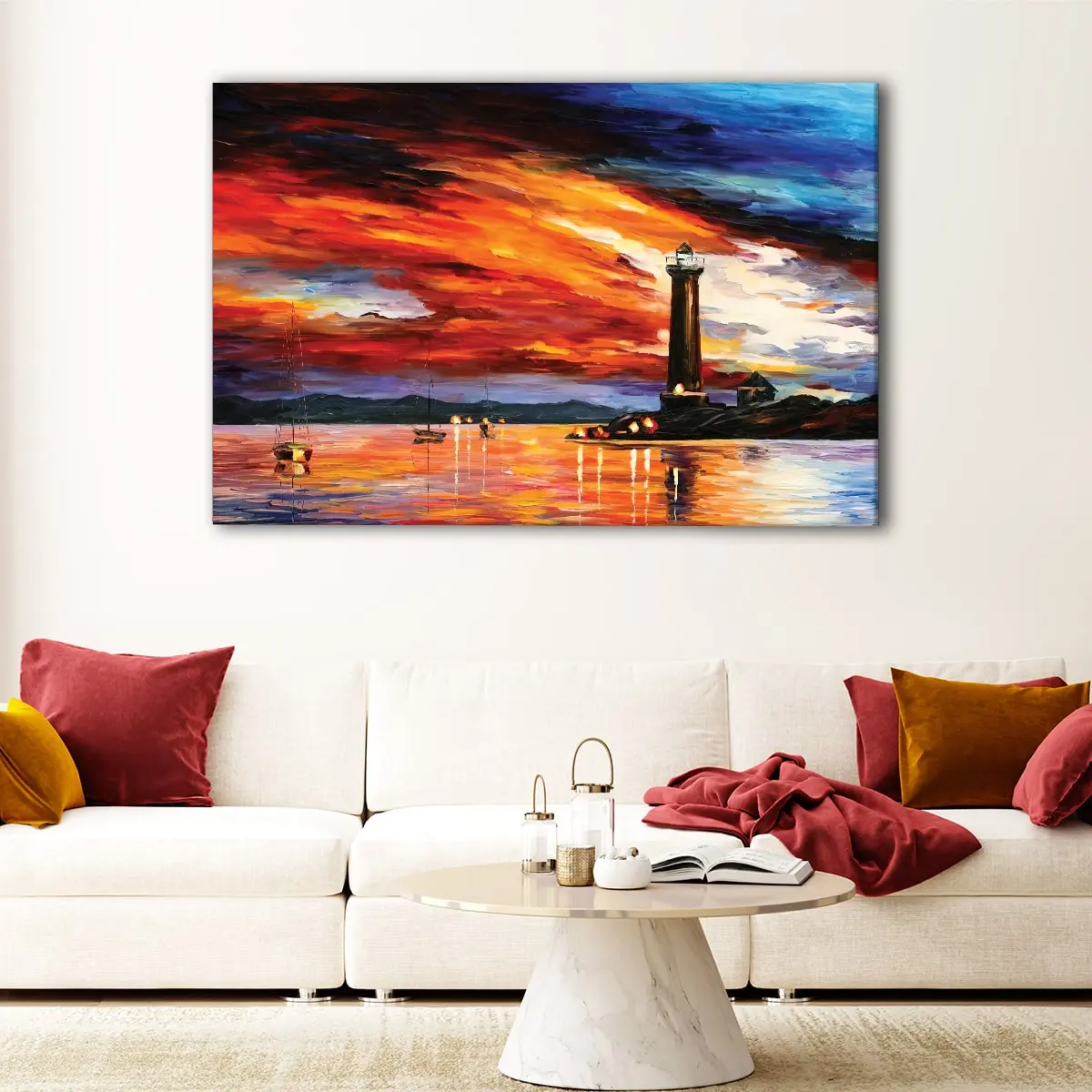 Make a lasting impression with this beautiful lighthouse sunset artwork, which is sure to capture the hearts of coastal lovers and beach enthusiasts. As a unique birthday or anniversary gift, or simply as a thoughtful gesture to brighten up a loved one's space, this giclee canvas art is an unbeatable choice. Choose this lighthouse canvas wall art, spread love and sun in their surroundings, and make their eyes shine with delight. Available for sale at tourathy.com.