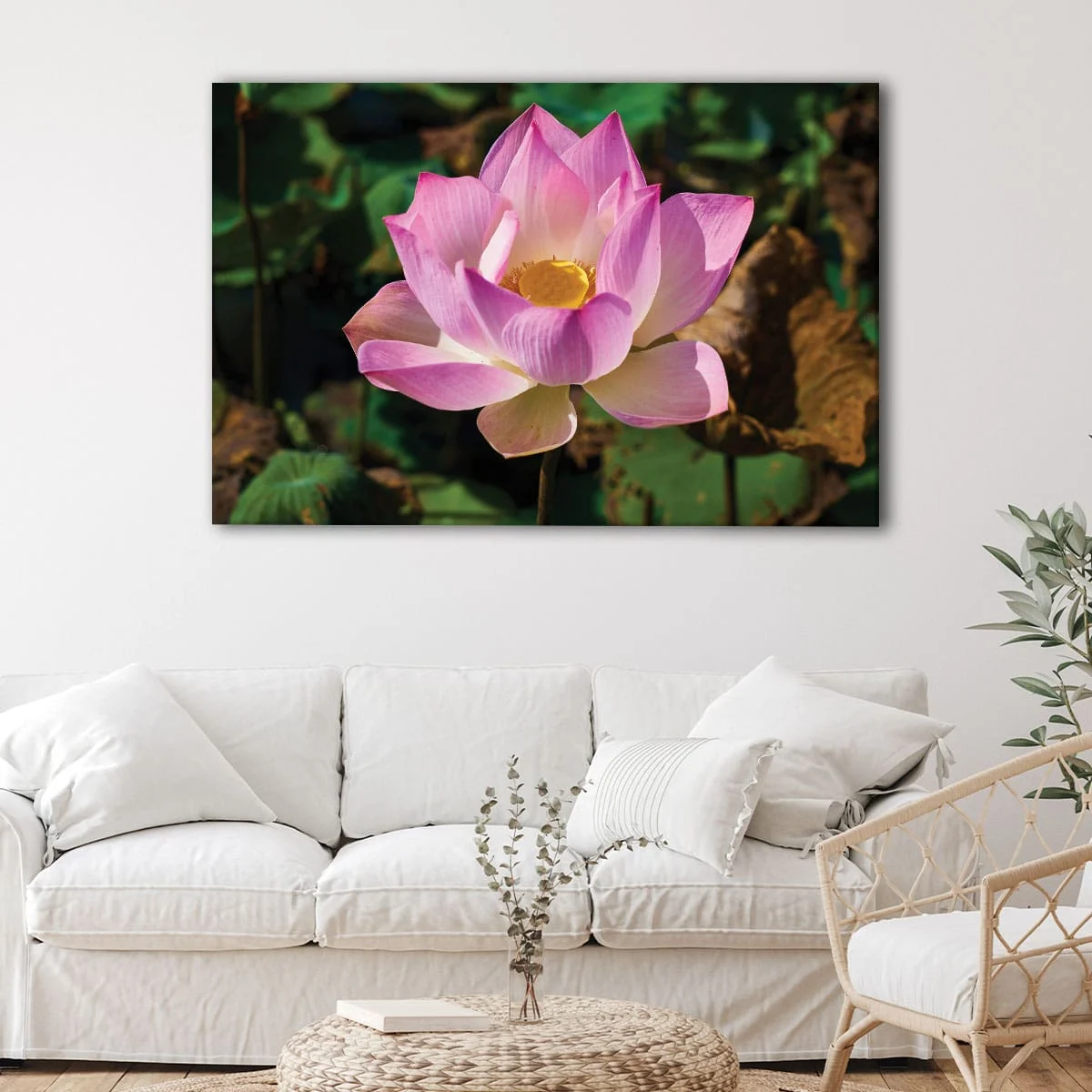 The Lotus Flower canvas art comes ready-to-hang with metal saw-tooth hangers on the back, and no additional framing required. We carefully hand-stretch a premium poly-cotton canvas over 100% natural wood stretcher bars by our expert craftsman. We combine premium quality canvas with pigment-archival inks to offer you high-definition prints with really vivid colors that last for 100+ years.