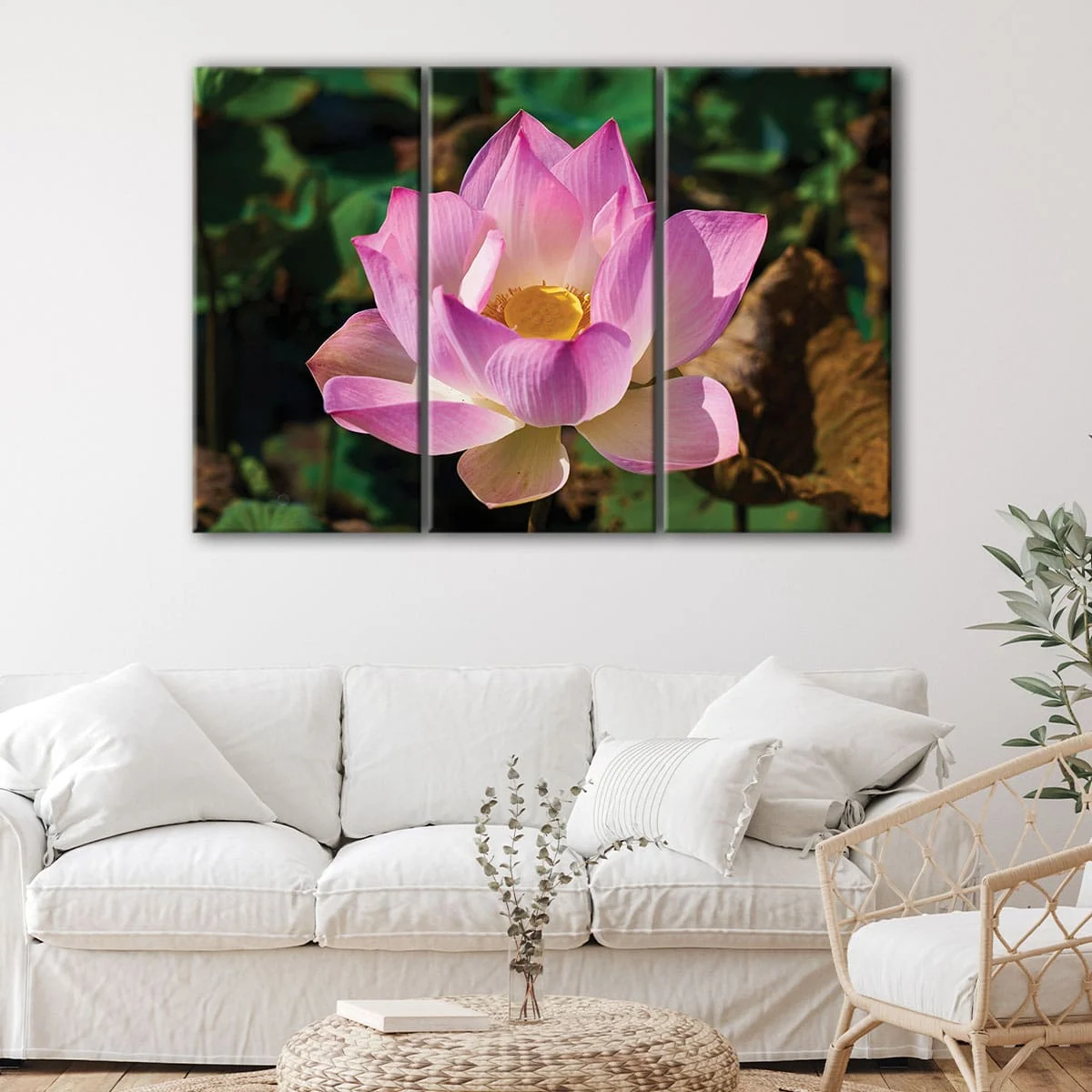 This pink lotus flower wall art is available in 1 panel and 3 panels, in a variety of sizes from small to over-sized canvas print. Perfect to fit in your living room, hallway, kids room or even your dining room.