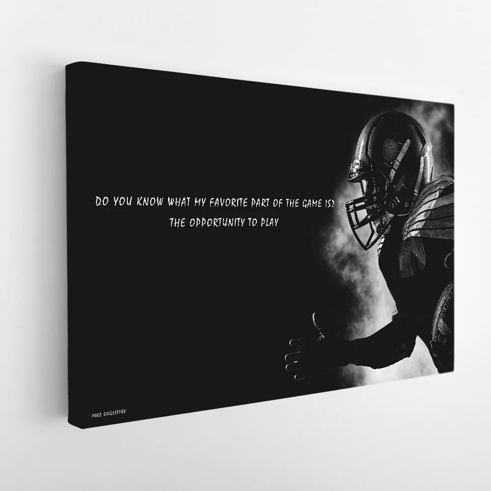 Perfect for anyone who loves American football, this motivational quote artwork makes a great birthday gift, anniversary gift, or any occasion. Spread determination in your surroundings by offering this football canvas wall art, available for sale at tourathy.com. Available in a range of sizes, from small to oversized, this artwork is perfect for any room, including home gyms, kids' rooms, game rooms, or man caves. The unique and inspirational design will surely be aCenterpiece of attention for any football fan.