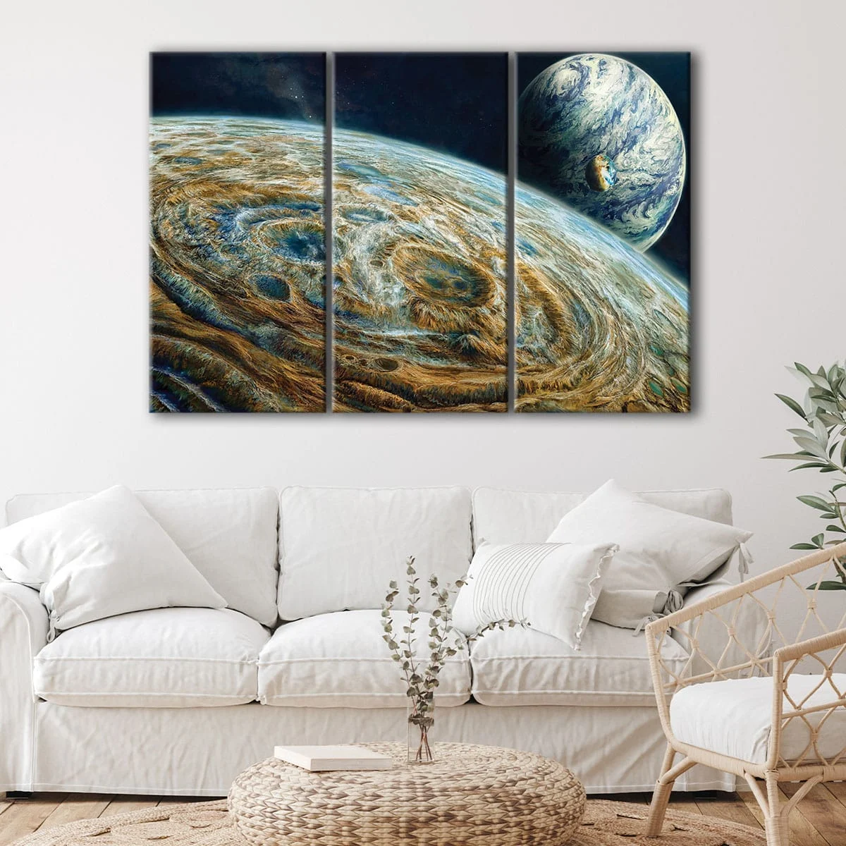 Choose from four configurations: a single panel, three-panel, or five-panel arrangement - perfect for adding a touch of astronomy-inspired beauty to your living room, hallway, kids room, or dining room. And with various sizes available, from compact to oversized canvas prints, you're sure to find the perfect fit for your space.