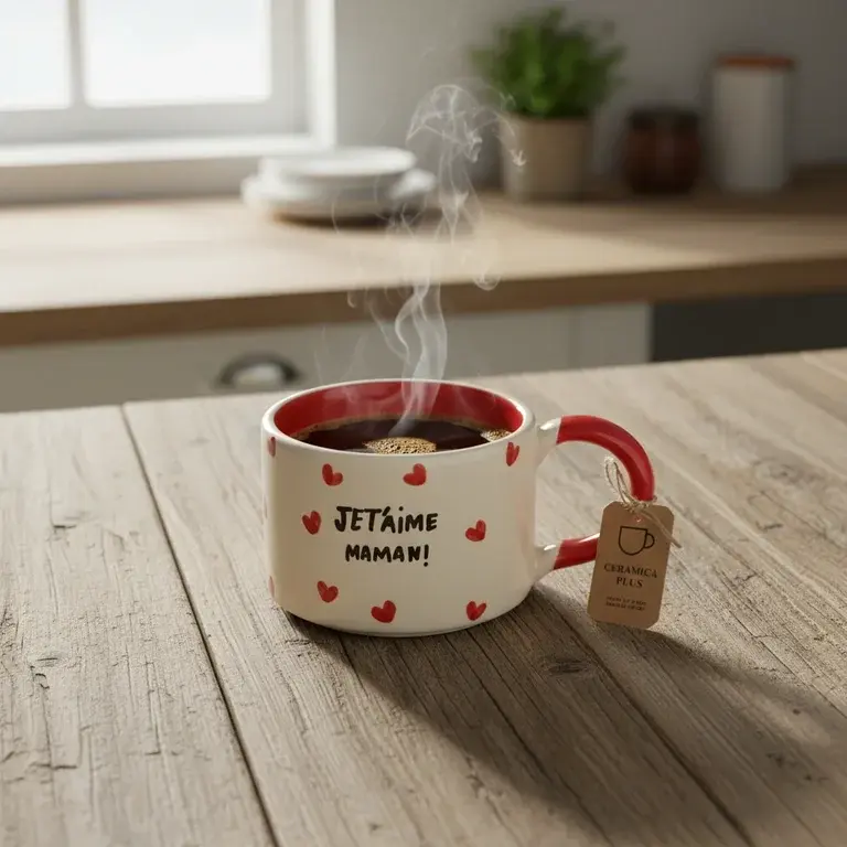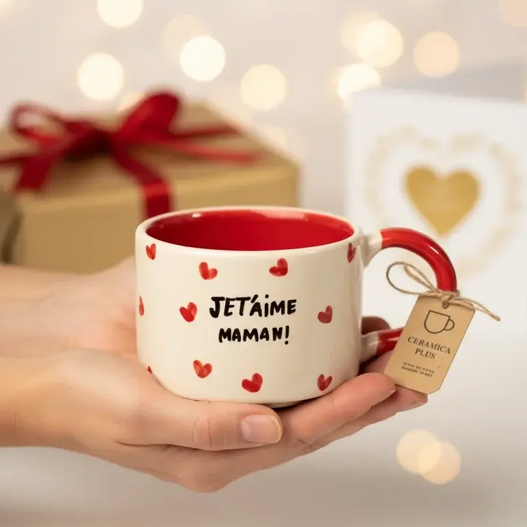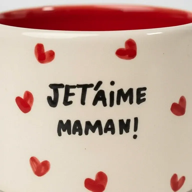 Celebrate the most important woman in your life with our exquisite I Love You Mom Mug from Ceramica Plus. This beautiful porcelain mug features an elegant white and red design with the touching French phrase 'Je t'aime maman', translating to 'I love you mom'. It is more than just drinkware; it is a daily reminder of your appreciation and love.