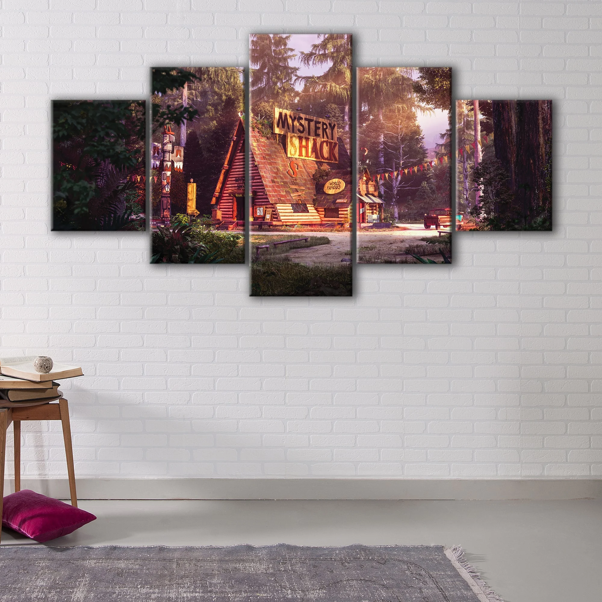 This Mystery Shack art is available in several panel options to fit your unique style: 1 panel, 3 panels, or 5 panels, ensuring you can find the perfect fit for your space. Plus, with a range of size options from small to oversized canvas print, you can find the perfect size to make a statement in your living room, hallway, kids' room, or dining room.