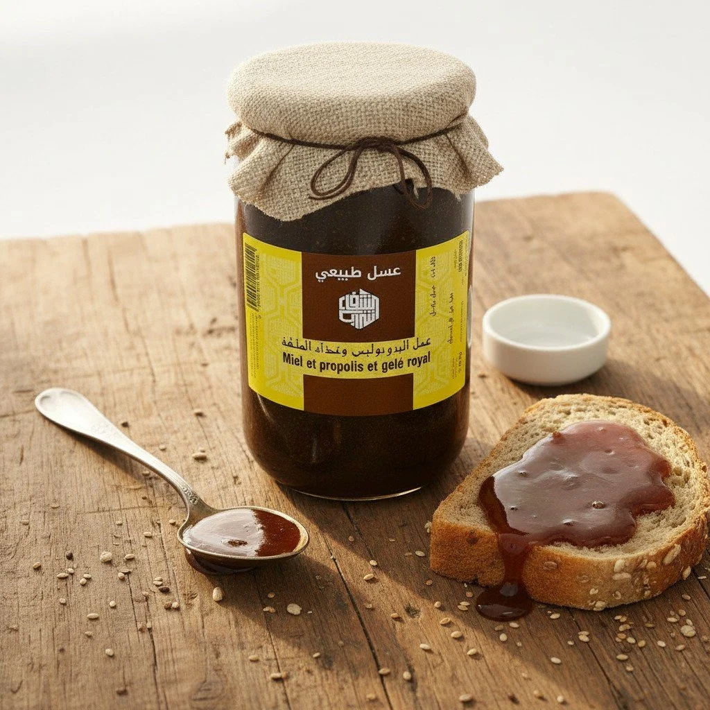 Discover our exceptional Natural Honey Blend with Propolis and Royal Jelly, a premium artisanal product crafted for discerning tastes. This unique formulation brings together the pure, rich sweetness of natural honey with the added depth and benefits of propolis and royal jelly. Each jar contains a carefully balanced mixture, resulting in a complex flavor profile that is both delicious and versatile. It serves as an excellent natural sweetener for teas, yogurts, and baked goods, elevating everyday meals with its distinctive taste.
