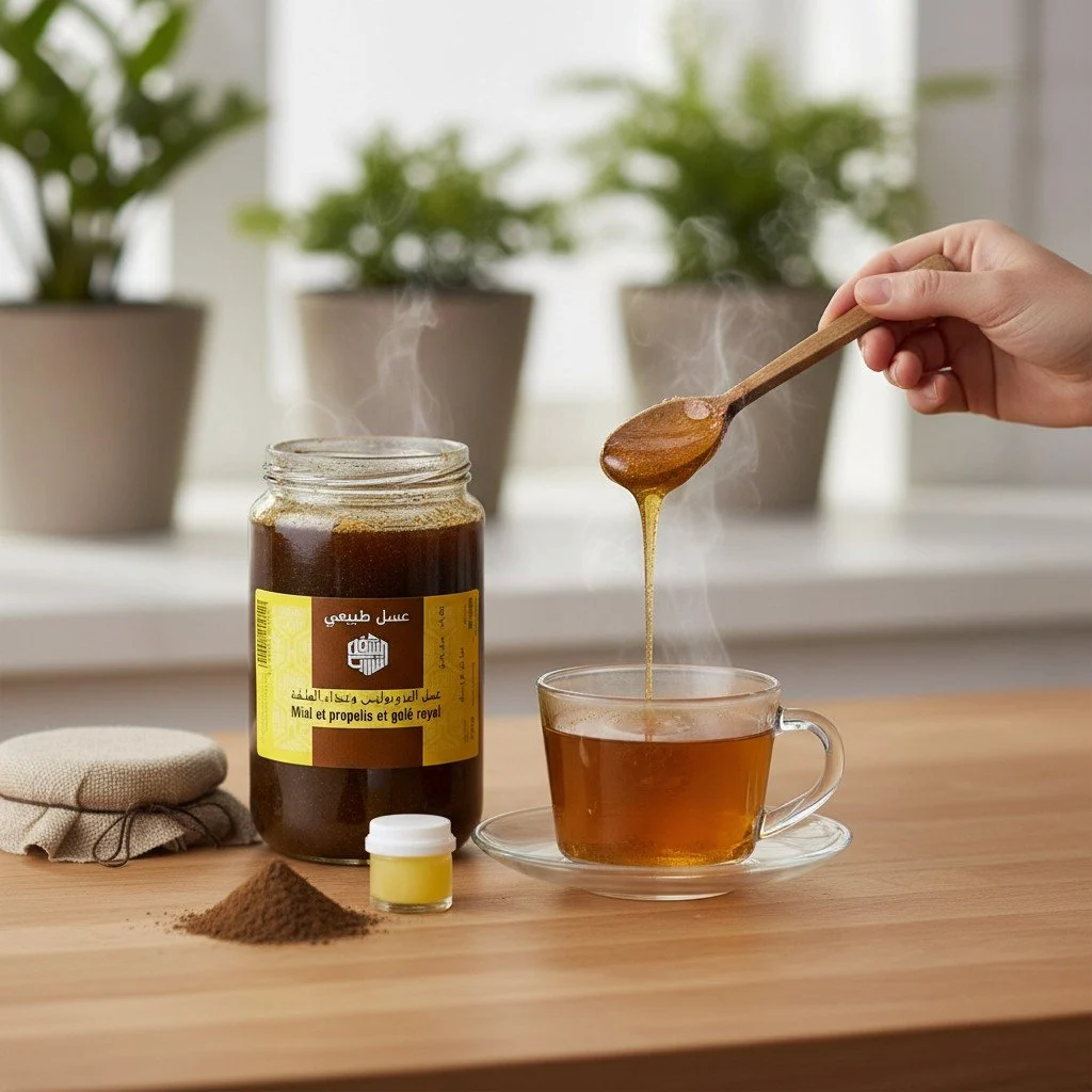 This blend features high-quality natural honey, known for its antioxidants, combined with propolis, a resinous substance collected by bees with potential immune-supporting properties. The inclusion of royal jelly, a nutrient-rich secretion, adds to the product's unique character. While we celebrate the traditional uses of these ingredients, we recommend enjoying this blend primarily for its superb taste and artisanal quality as part of a balanced diet.