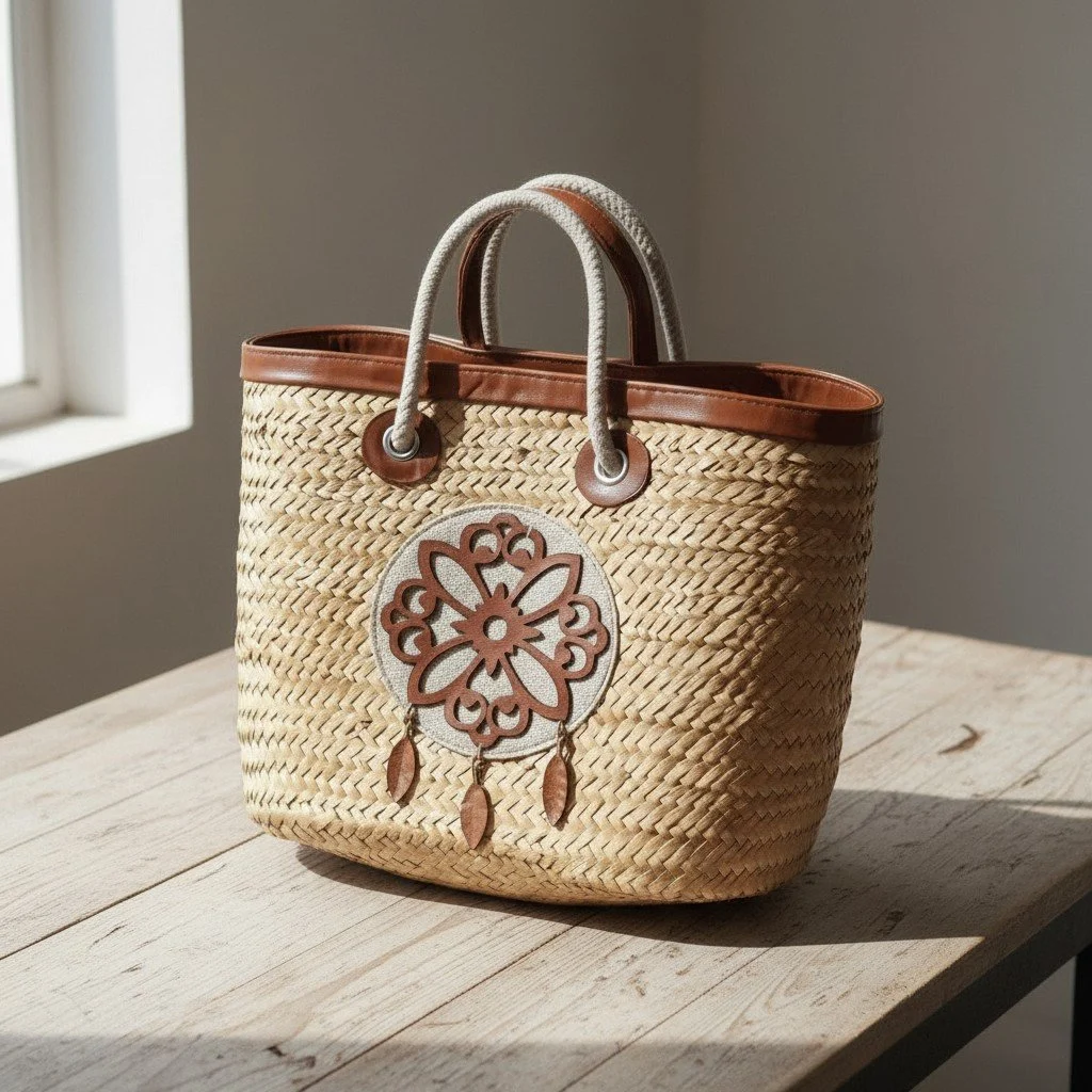The Nefta Straw and Leather Bag is a distinctive handcrafted accessory from Troglo Artisan. This bag masterfully combines the natural, textured appeal of woven straw with the refined durability of leather trim. It is designed as a functional yet fashionable piece, suitable for carrying your daily essentials with style. The artisanal construction ensures each bag has its own unique character, reflecting the skill and tradition behind its creation.