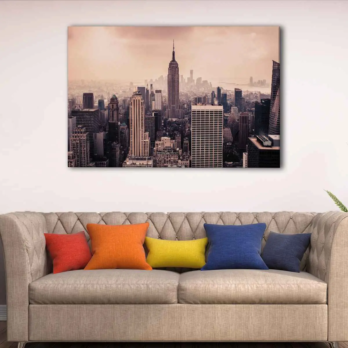 Our beautiful New York City towers wall art comes ready-to-hang with metal saw-tooth hangers on the back, and you'll never need additional framing. We carefully hand-stretch 100% natural wood stretcher bars with expert craftsmanship. We merge premium poly-cotton canvas with pigment-archival inks to deliver high-definition prints that display vivid colors, lasting for over 100 years.