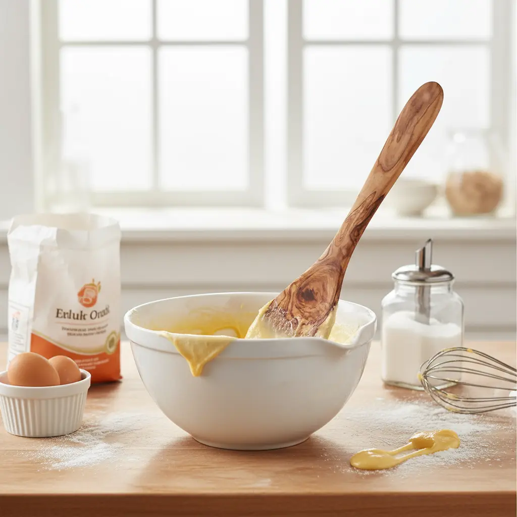 The spatula's innovative curved edge perfectly conforms to the corners of bowls and pans, ensuring you can scrape every last bit of food and reduce waste effectively. Made from durable olive wood, this utensil is gentle on all types of cookware, preventing scratches on your precious pots and pans. The natural wood surface won't react with acidic ingredients, preserving the flavor of your culinary creations.