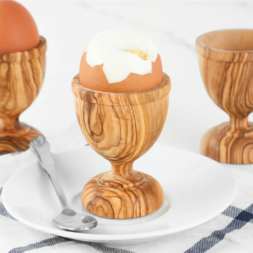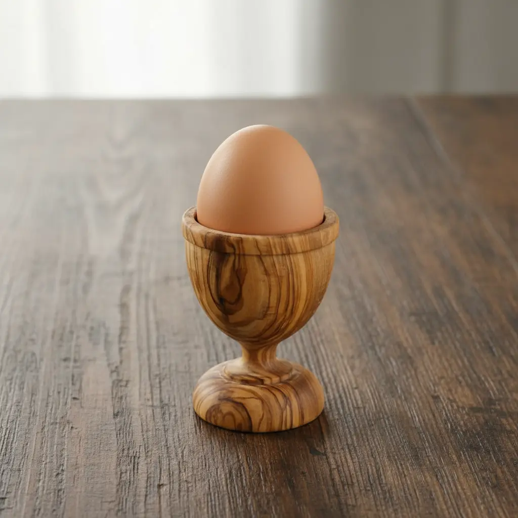 Discover Artisraw's beautifully handcrafted olive wood egg cup, a unique piece of serveware designed specifically for your Easter table celebrations. Each cup is meticulously carved from solid olive wood, showcasing the wood's beautiful natural grain patterns that make every piece truly one-of-a-kind. The sustainable nature of olive wood makes this functional decor item an environmentally conscious choice for your holiday table settings.