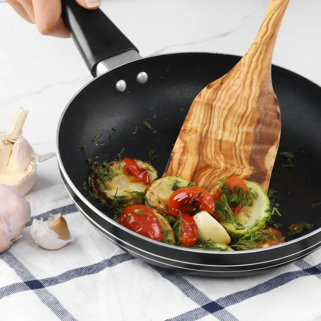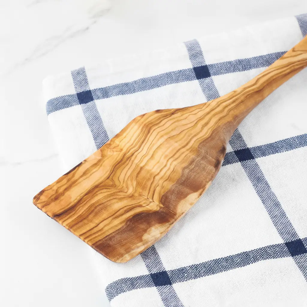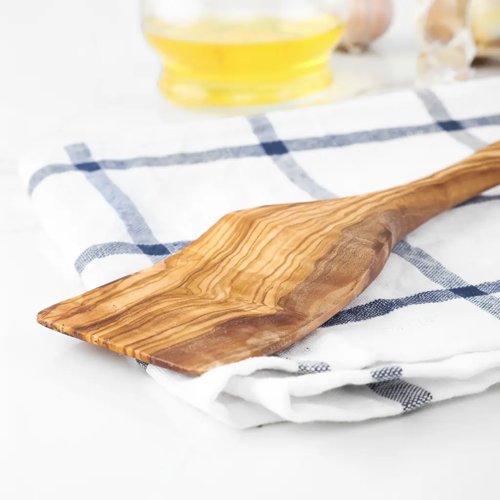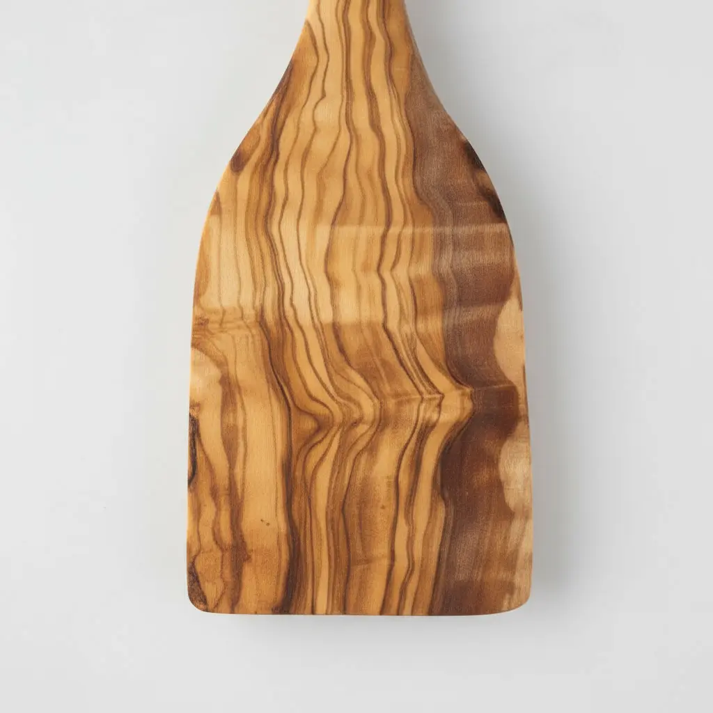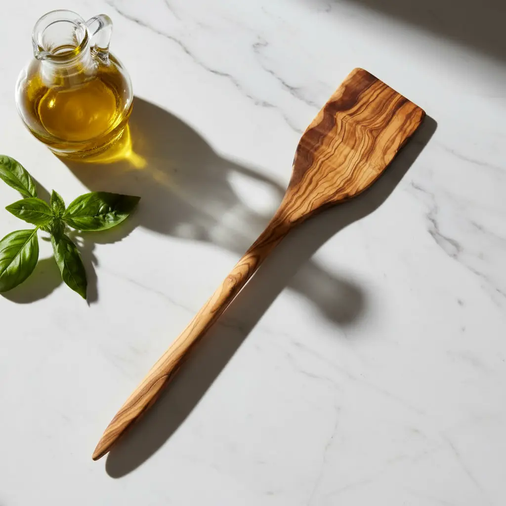 This beautiful flat spatula is handcrafted from a single piece of durable olive wood, ensuring exceptional quality and longevity. The natural wood grain provides a unique, elegant appearance that enhances your kitchen's aesthetic. Olive wood is known for its durability and natural antibacterial properties, making it both practical and hygienic for daily kitchen use. The smooth, polished finish feels comfortable in hand and won't scratch or damage your cookware surfaces.
