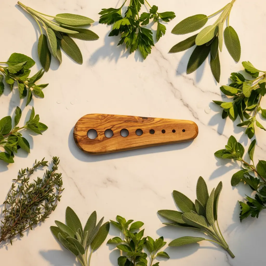 Olive Wood Herb Stripper – Handmade Artisan Tool