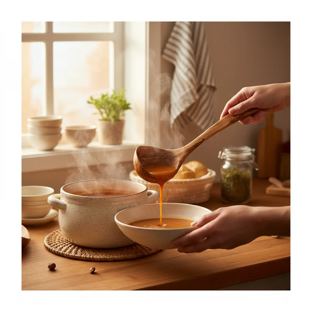 The artisanal design of this ladle spoon combines elegance with practicality, making it a must-have for any kitchen collection. The smooth, polished surface feels comfortable in your hand, while the deep bowl of the spoon is ideal for serving liquids and semi-solid foods. Its beautiful appearance adds a touch of sophistication to your table setting, whether for everyday meals or special occasions. Crafted to last, this spoon resists odors and stains, maintaining its beauty over time with proper care.