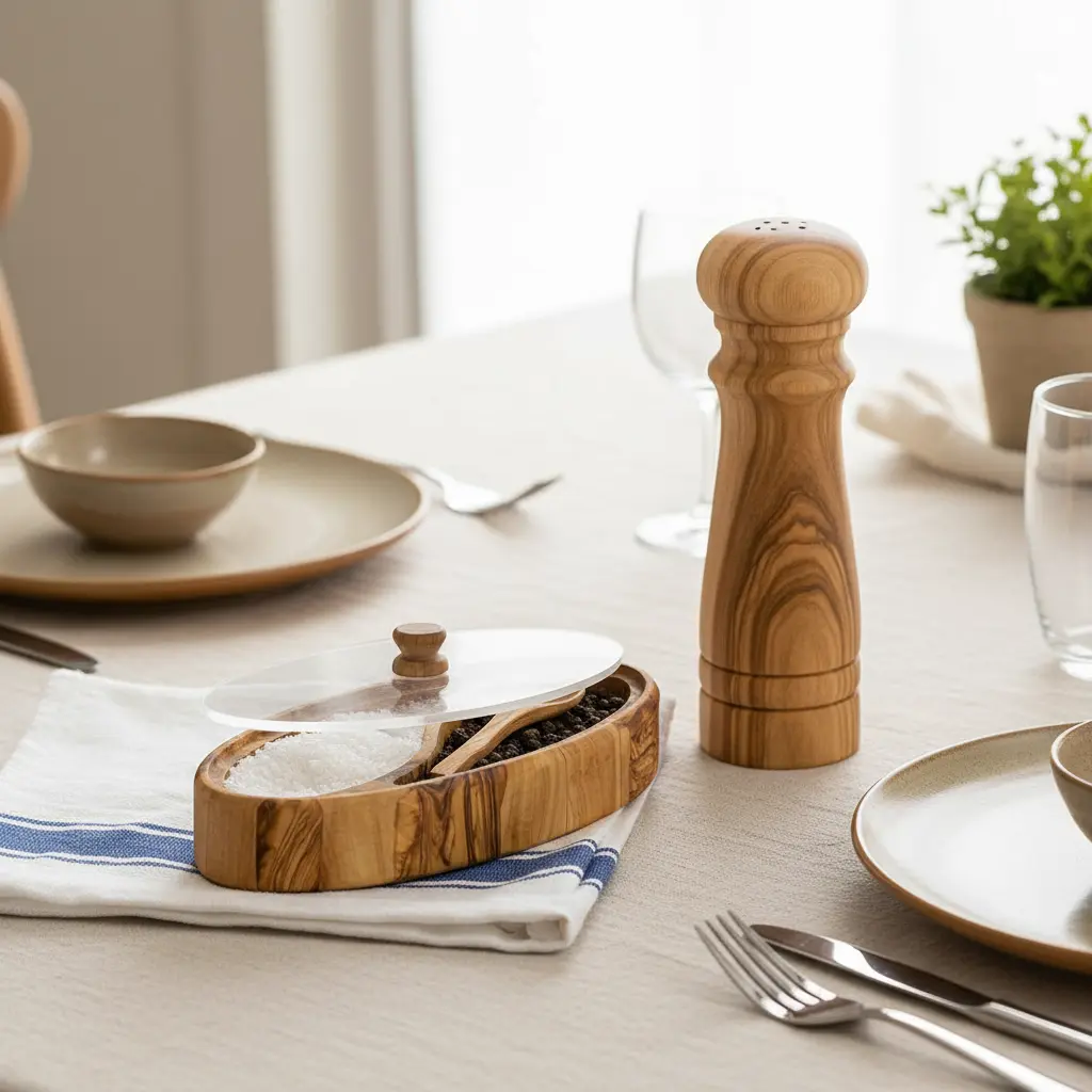 This beautiful salt cellar from Artisraw showcases the natural elegance of handcrafted olive wood, known for its durability and unique grain patterns. The wooden body provides a warm, rustic aesthetic that enhances any kitchen decor while offering a sturdy base for daily use. The combination of traditional woodworking and modern functionality makes this piece a standout addition to your culinary space.