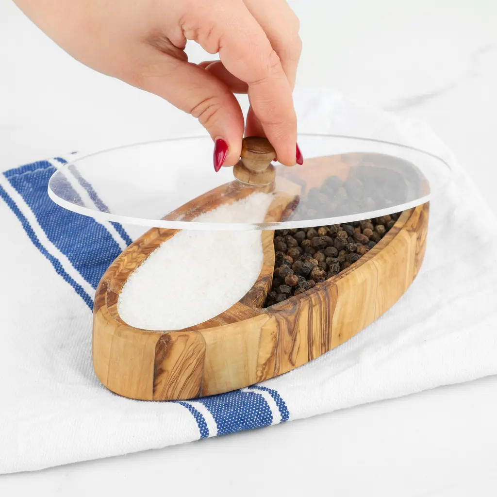 Olive Wood Salt Cellar with Plexiglass Lid