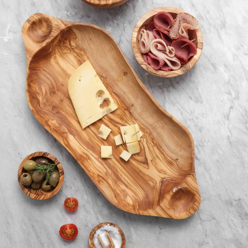Discover the Artisraw Olive Wood Serving Platter, a beautifully handcrafted kitchenware essential designed for both functionality and aesthetic appeal. Each platter showcases the natural beauty of olive wood with its unique grain patterns and warm, rustic tones. Perfect for serving cheeses, fruits, appetizers, and various culinary creations, this durable platter elevates any dining experience with its elegant presentation and practical design.