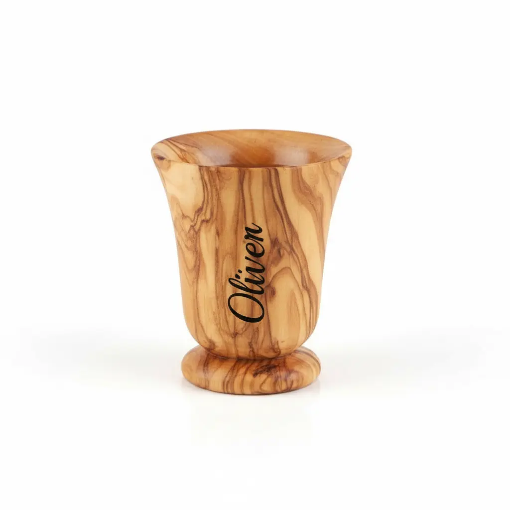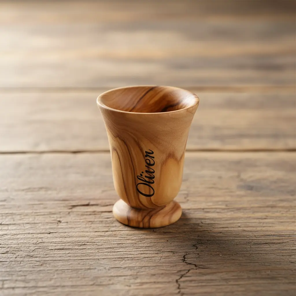 Discover this unique, handcrafted home decor piece made from sustainable olive wood. This shot goblet features a beautiful natural grain pattern that makes each piece one-of-a-kind. Perfect for serving spirits or as an elegant decorative accent in your home bar or dining area. The durable construction ensures long-lasting use while maintaining its elegant appearance.