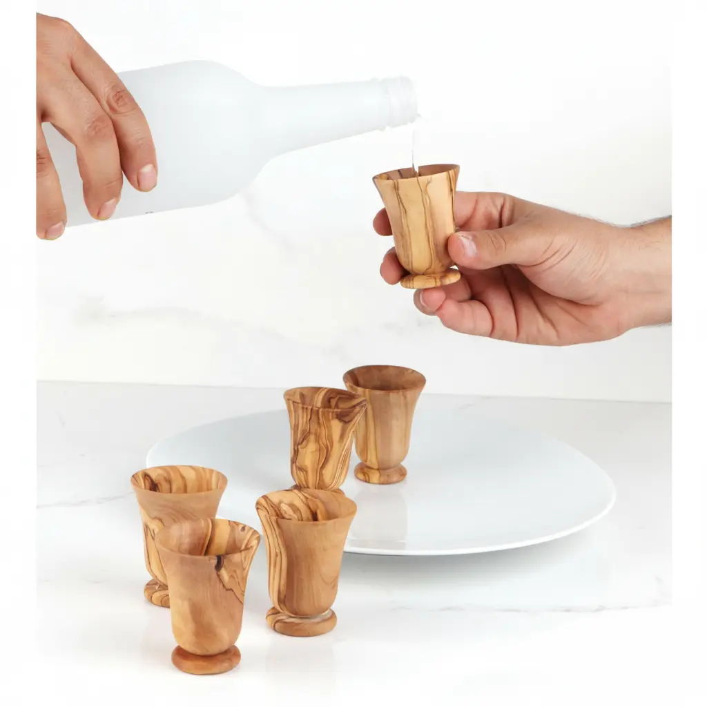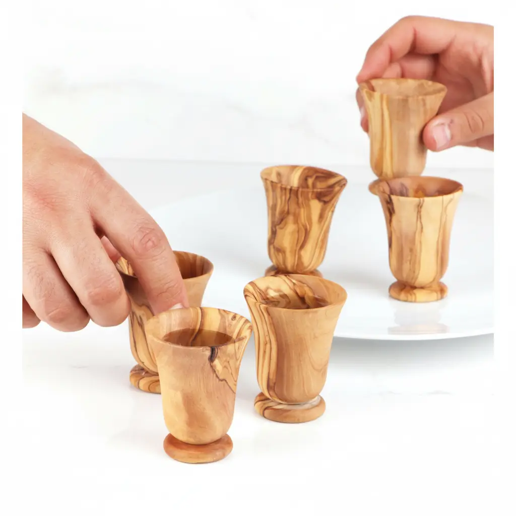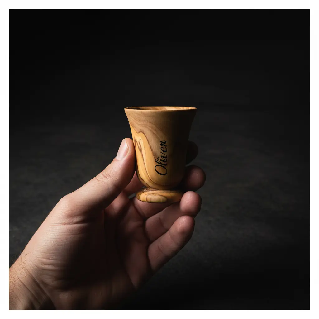 Olive wood naturally possesses antimicrobial properties, making it both hygienic and practical for regular use. The wood's natural characteristics not only provide visual appeal but also functional benefits. This shot goblet combines traditional craftsmanship with modern design sensibilities, creating a piece that is both useful and aesthetically pleasing for any home setting.