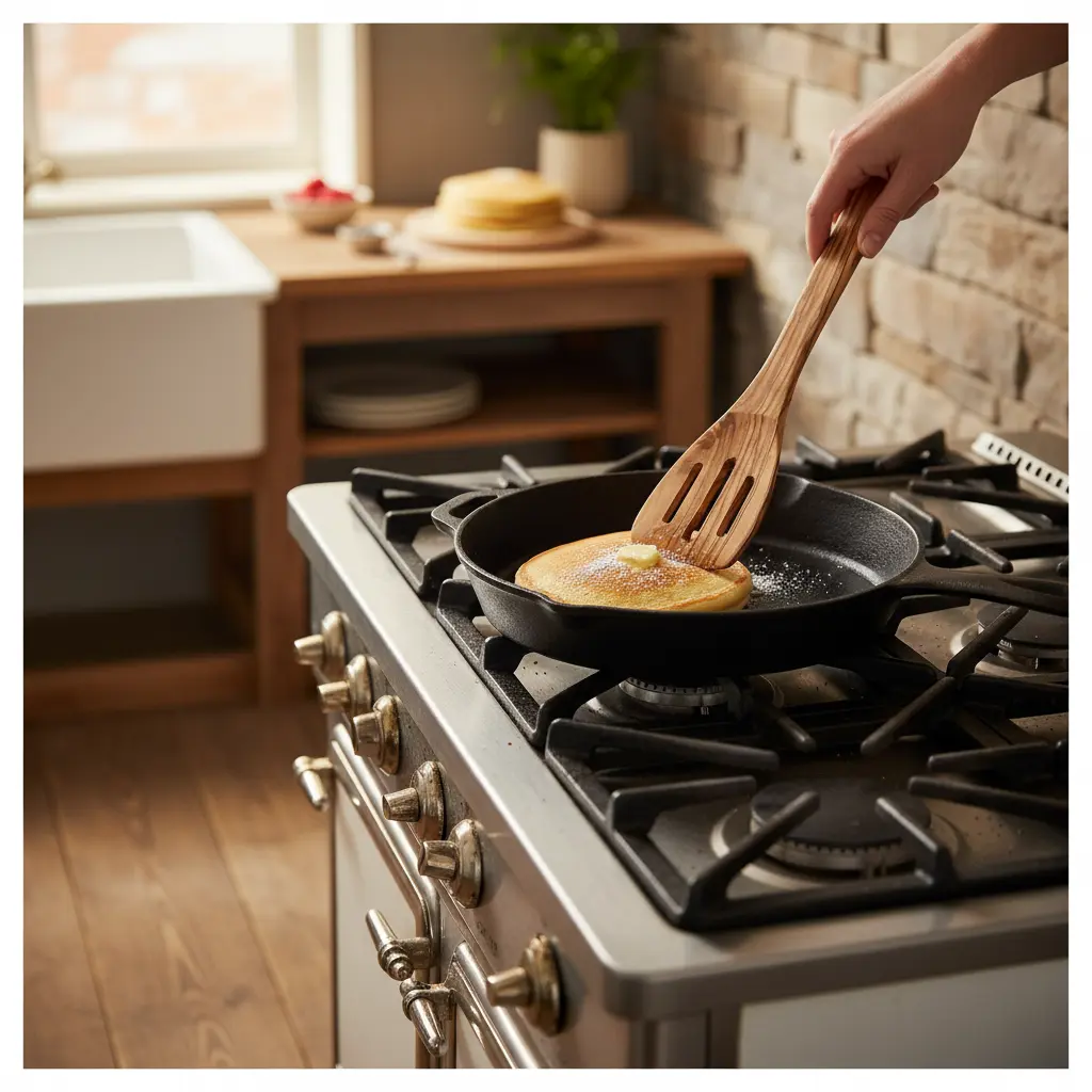 The innovative slotted design allows for perfect draining while flipping foods, making it ideal for cooking pancakes, eggs, fish, and other delicate items. The ergonomic handle ensures comfortable grip and control during use, reducing hand fatigue during extended cooking sessions. The natural wood surface is gentle on all types of cookware, including non-stick surfaces, preventing scratches and damage to your valuable pots and pans.
