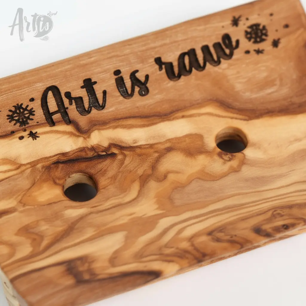 This exquisite soap dish is meticulously handcrafted from natural Tunisian olive wood, showcasing the unique grain patterns and warm tones of this sustainable material. Each piece is one-of-a-kind, featuring the natural variations that make olive wood so prized among artisans. The wood's inherent antibacterial properties ensure a hygienic surface for your daily use, while its durability promises years of reliable service in your bathroom or kitchen.