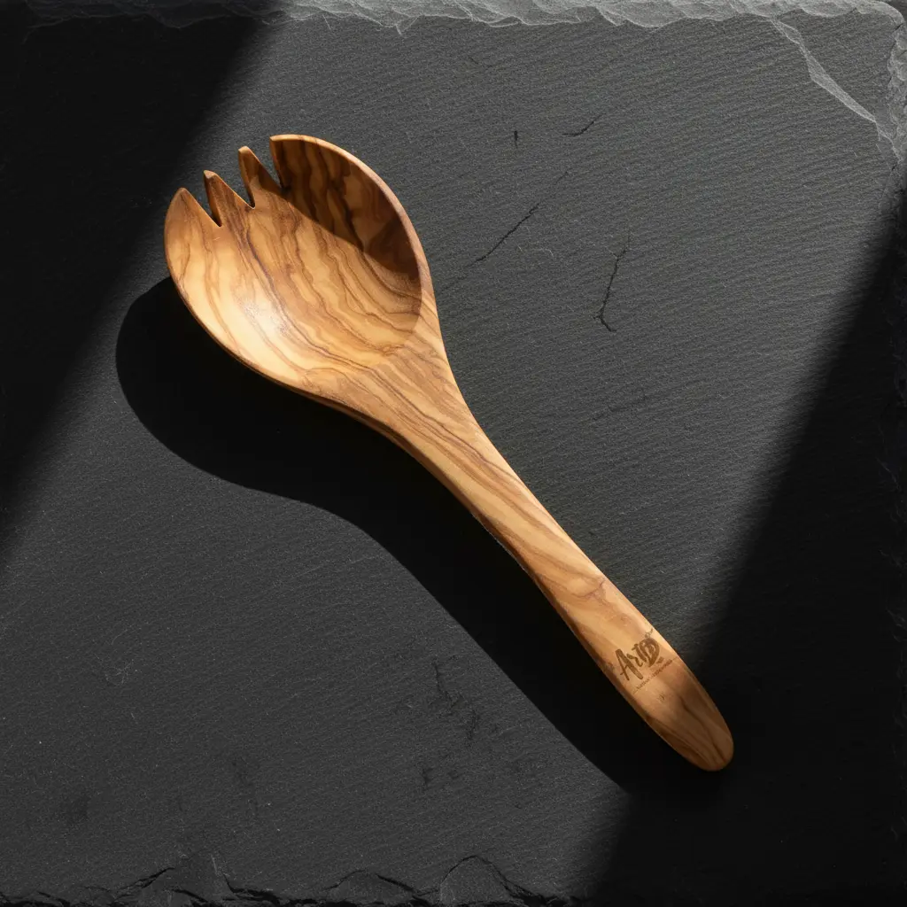 Artisraw takes pride in creating sustainable kitchen tools that combine beauty with functionality. Each olive wood spork is carefully handcrafted, highlighting the natural wood grain that makes every piece unique. The durable olive wood construction ensures long-lasting use while maintaining an eco-friendly profile. Add this distinctive serving utensil to your collection and experience the perfect blend of traditional craftsmanship and modern kitchen convenience.