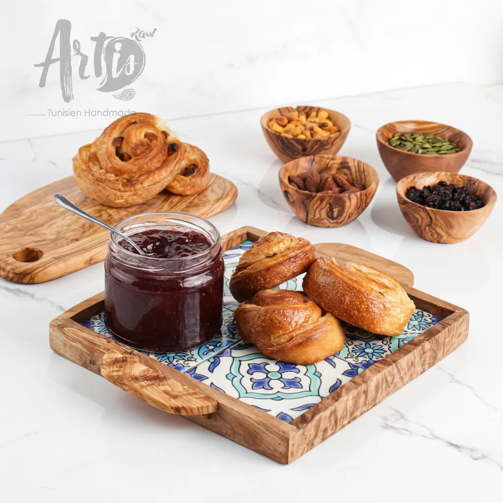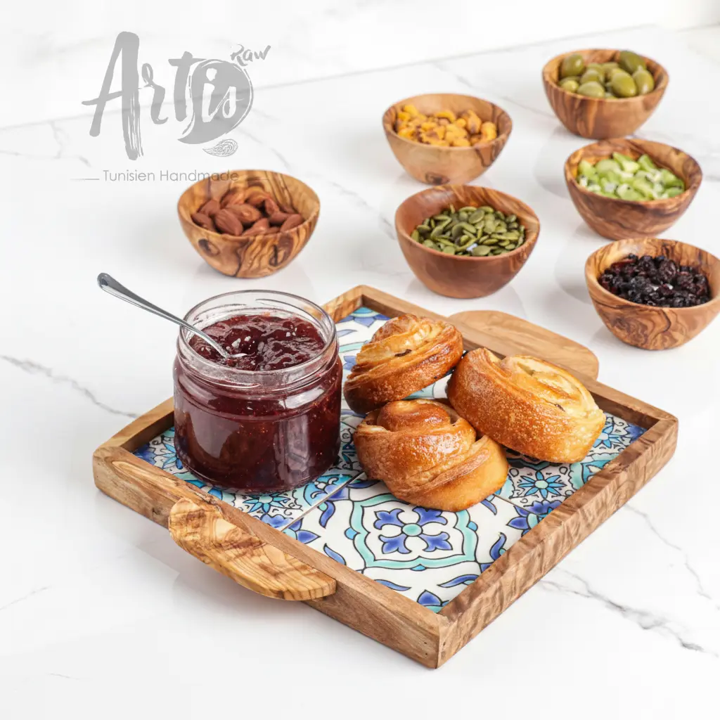 Created by Artisraw with meticulous attention to detail, this tray represents the highest standards of artisanal craftsmanship. The olive wood base is sustainably sourced and finished to enhance its natural beauty while providing durability. The hand-painted ceramic tiles are sealed to protect the artwork from wear and moisture. To maintain your tray's beauty, simply wipe clean with a damp cloth and dry immediately. Avoid soaking in water or placing in dishwashers. Add this unique piece to your collection and enjoy the touch of handcrafted elegance it brings to your home decor and entertaining style.