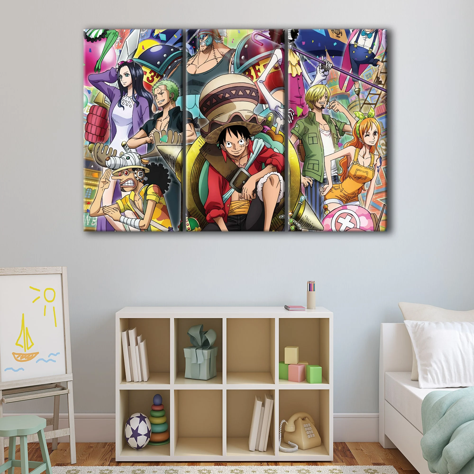 Available in various sizes and configurations, our One Piece wall art is perfect for any room in your home. Choose from a 1-panel or 3-panels canvas wrap, and select the size that best fits your space. This fantastic artwork is sure to be a conversation starter and a beautiful addition to your One Piece collection.