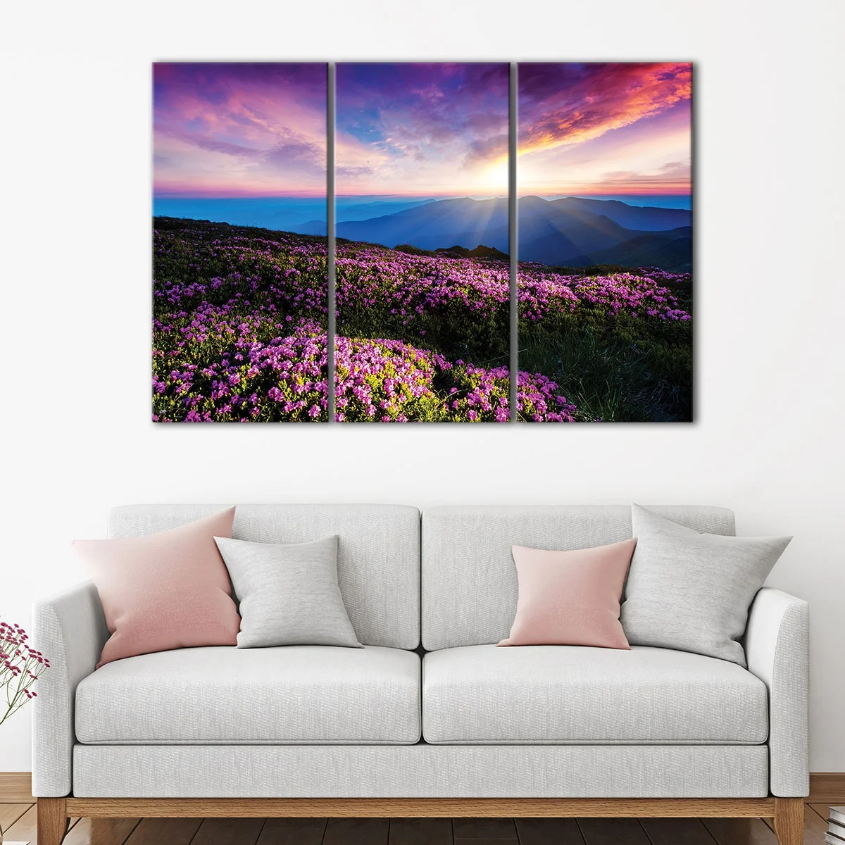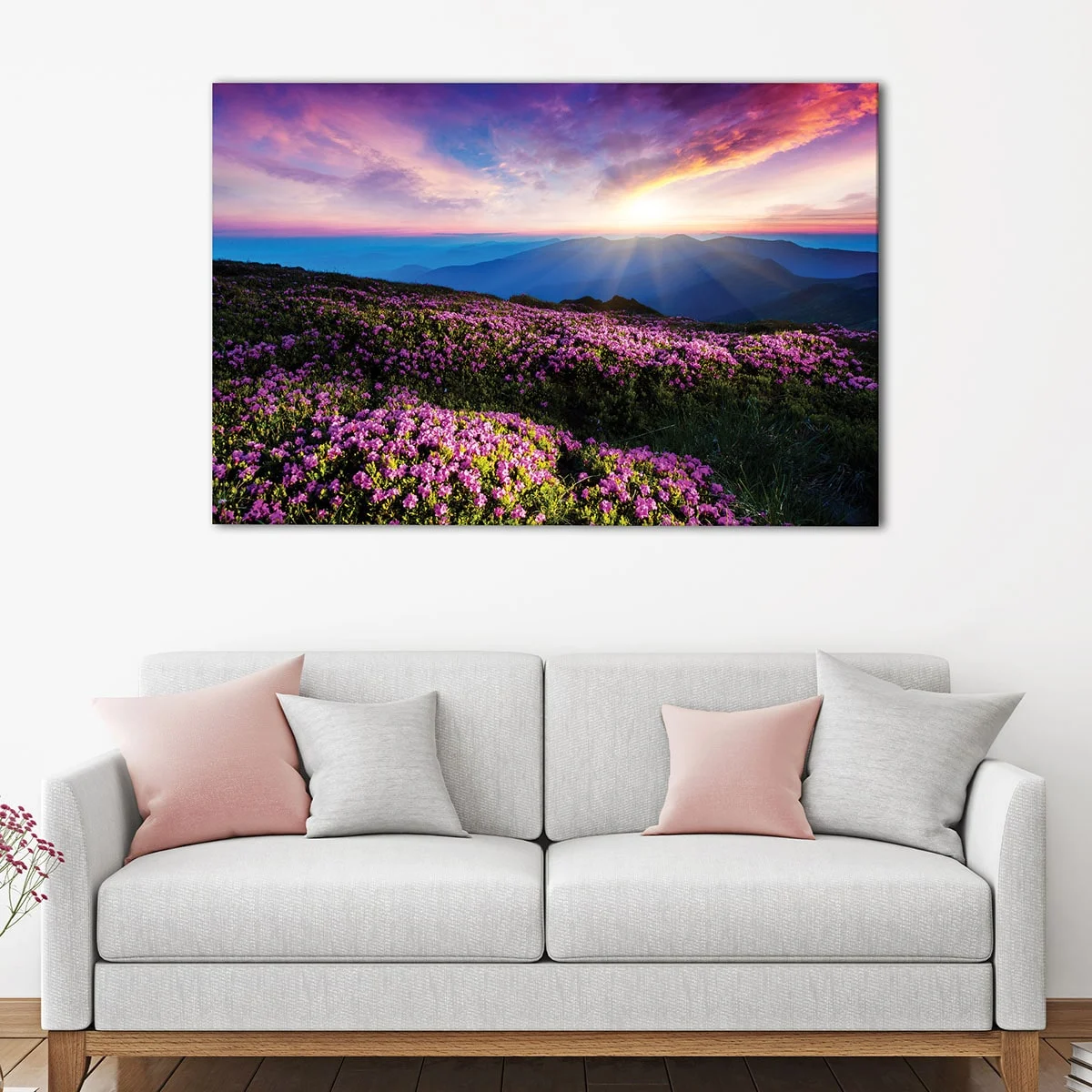Pink Flowers Field Wall Art Decor Ideas
