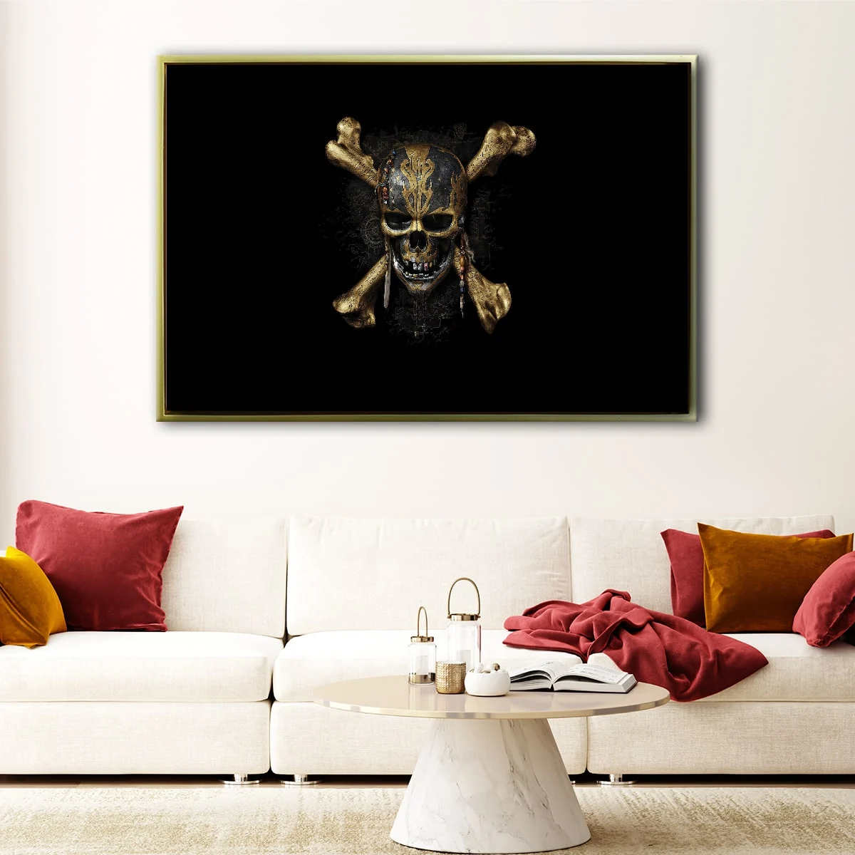 The pirate skull canvas art comes ready-to-hang with metal saw-tooth hangers on the back, and no additional framing required. It features 100% natural wood stretcher bars carefully hand-stretched by our expert craftsman. We combine premium poly-cotton canvas with pigment-archival inks to offer high-definition prints with vivid colors that last for 100+ years.