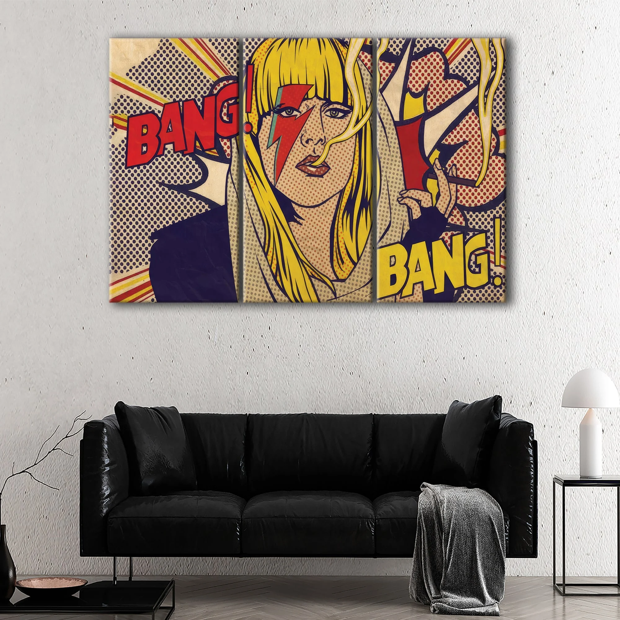 Make a statement in your home with the stunning Pop Art Girl canvas art, available for sale at tourathy.com. This exquisite piece comes ready-to-hang with metal saw-tooth hangers, eliminating the need for additional framing. Each canvas is carefully hand-stretched over 100% natural wood stretcher bars by our skilled artisans, ensuring a durable and long-lasting piece of art.