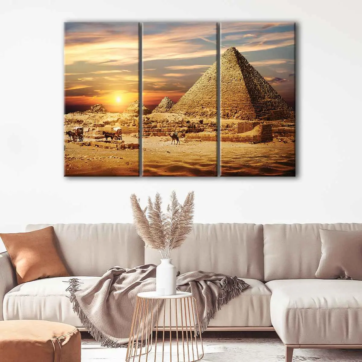 This Egyptian monuments wall art is available in a variety of options to suit your style and space. You can choose from 1 panel, 3 panels, or 5 panels to create a breathtaking display in your living room, hallway, kids room, or dining room. Plus, it's available in multiple sizes, from small to oversized canvas prints, to fit perfectly in any setting.